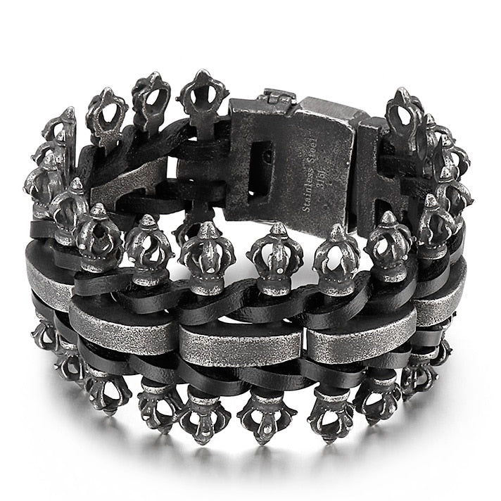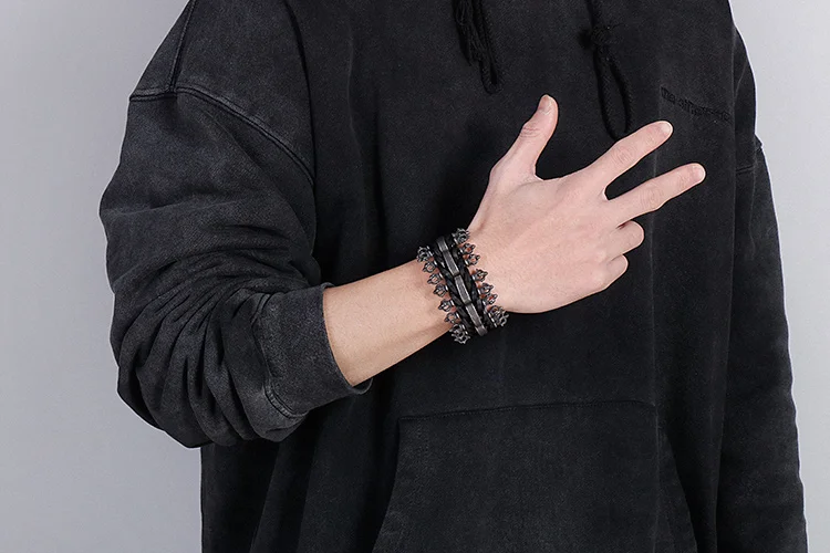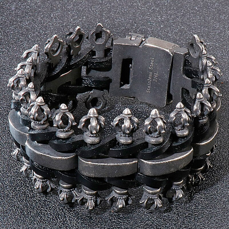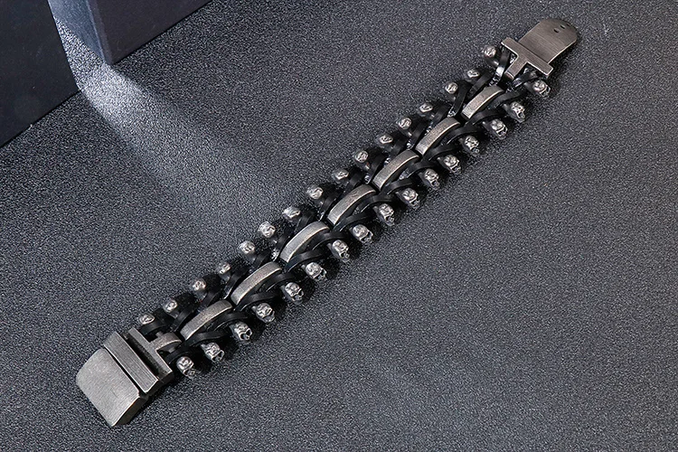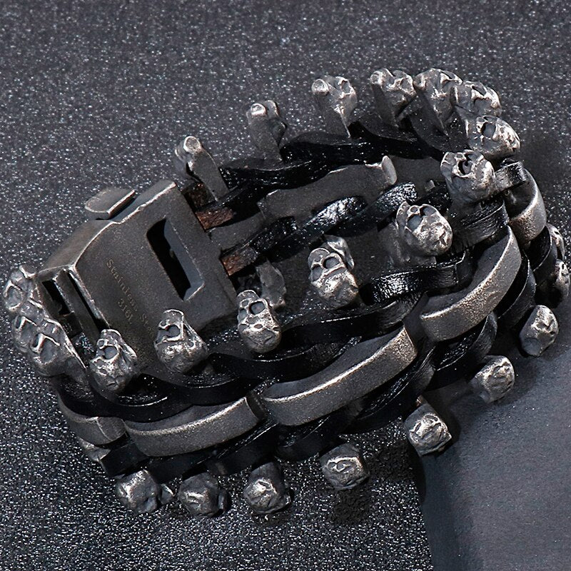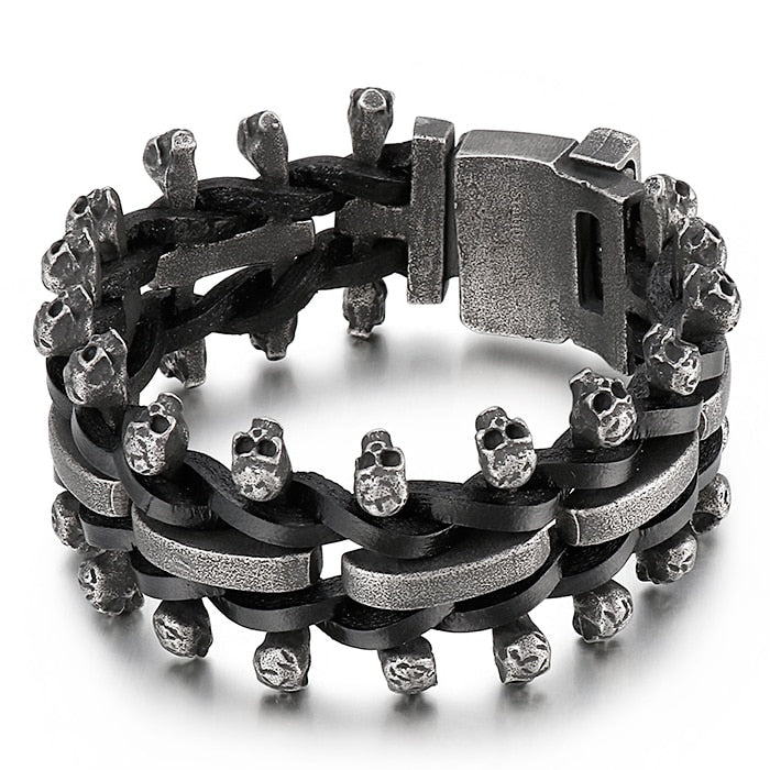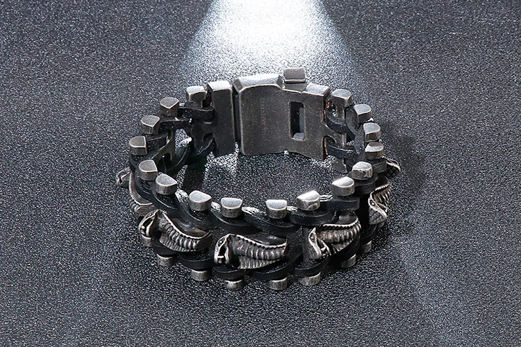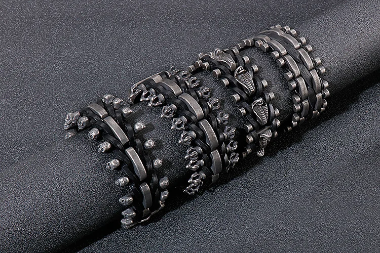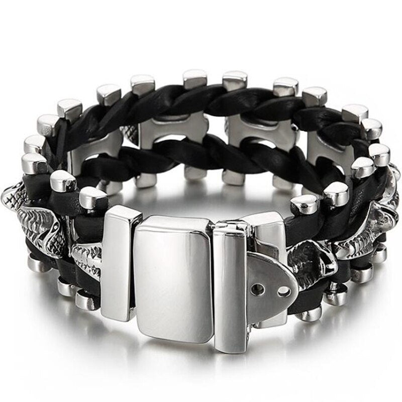 Pulsera de cuero para hombre con calavera y serpiente, estilo vintage, de acero inoxidable.