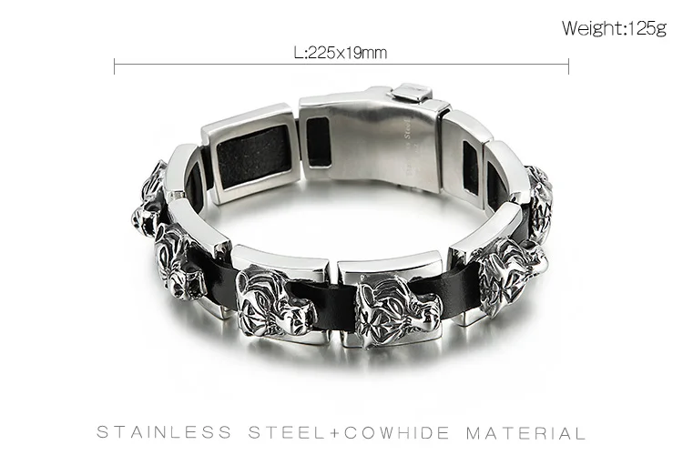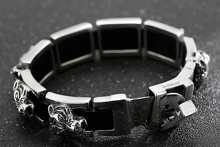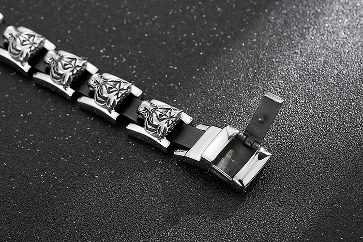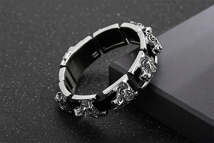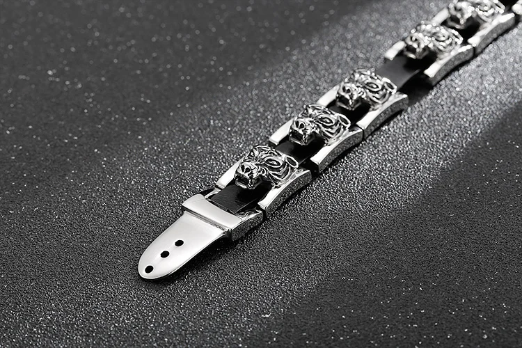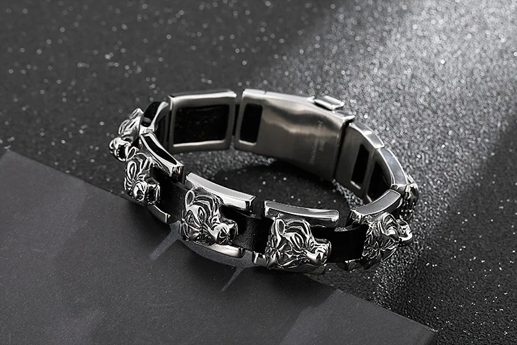 Pulseras de cuero para hombre con hebilla de cinturón, diseño gótico de cabeza de tigre, de acero inoxidable.