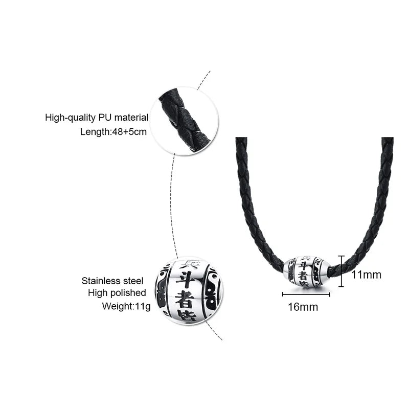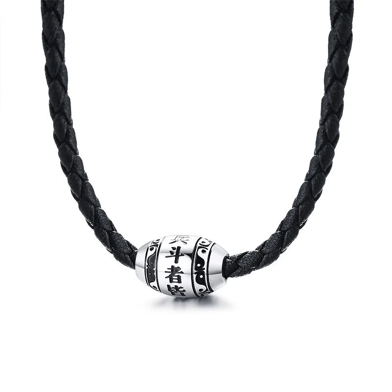 Collar para hombre con 9 palabras de Buda, mantra de la suerte, cuentas de acero inoxidable, colgante con cuerda trenzada negra, cadena de 20 pulgadas.