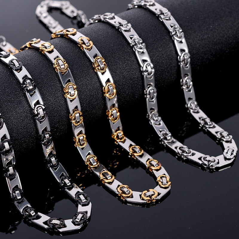 Collares para hombre, gargantilla de cadena de acero inoxidable color plata y oro negro.