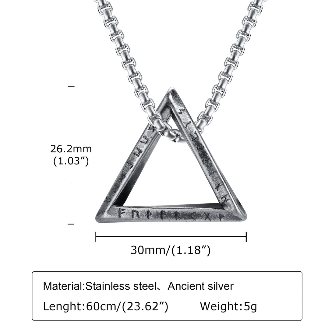 Collar vikingo nórdico para hombre, collar con amuleto colgante geométrico triangular de acero inoxidable resistente al agua, cadena de caja de 55/60/70 cm.