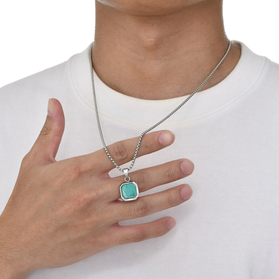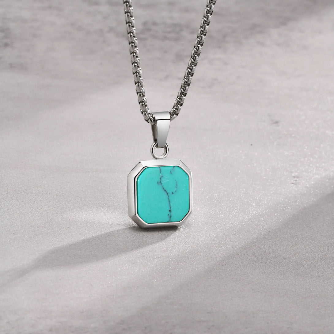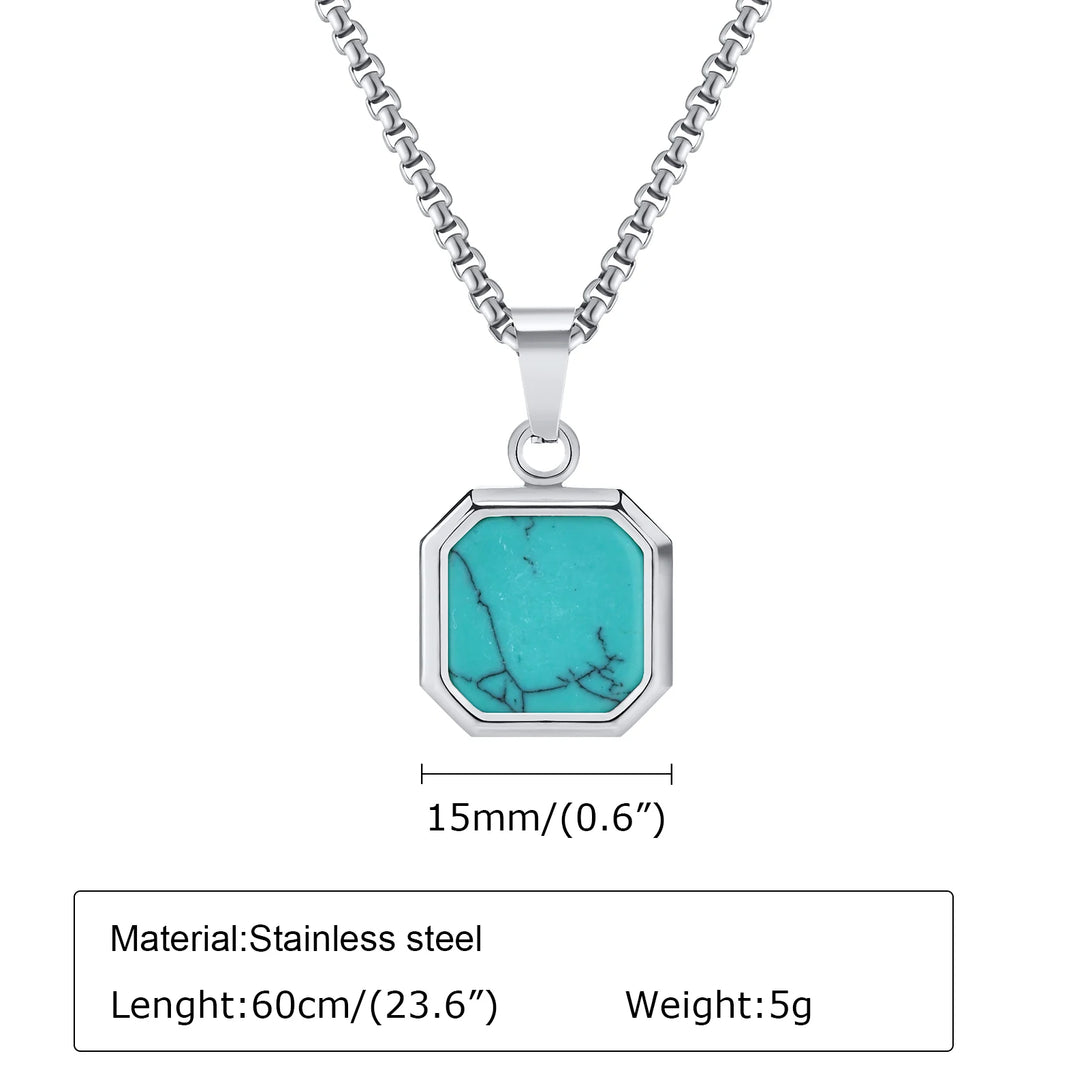 Collar con colgante cuadrado para hombre, de acero inoxidable de 15 mm, con elegante colgante geométrico turquesa.