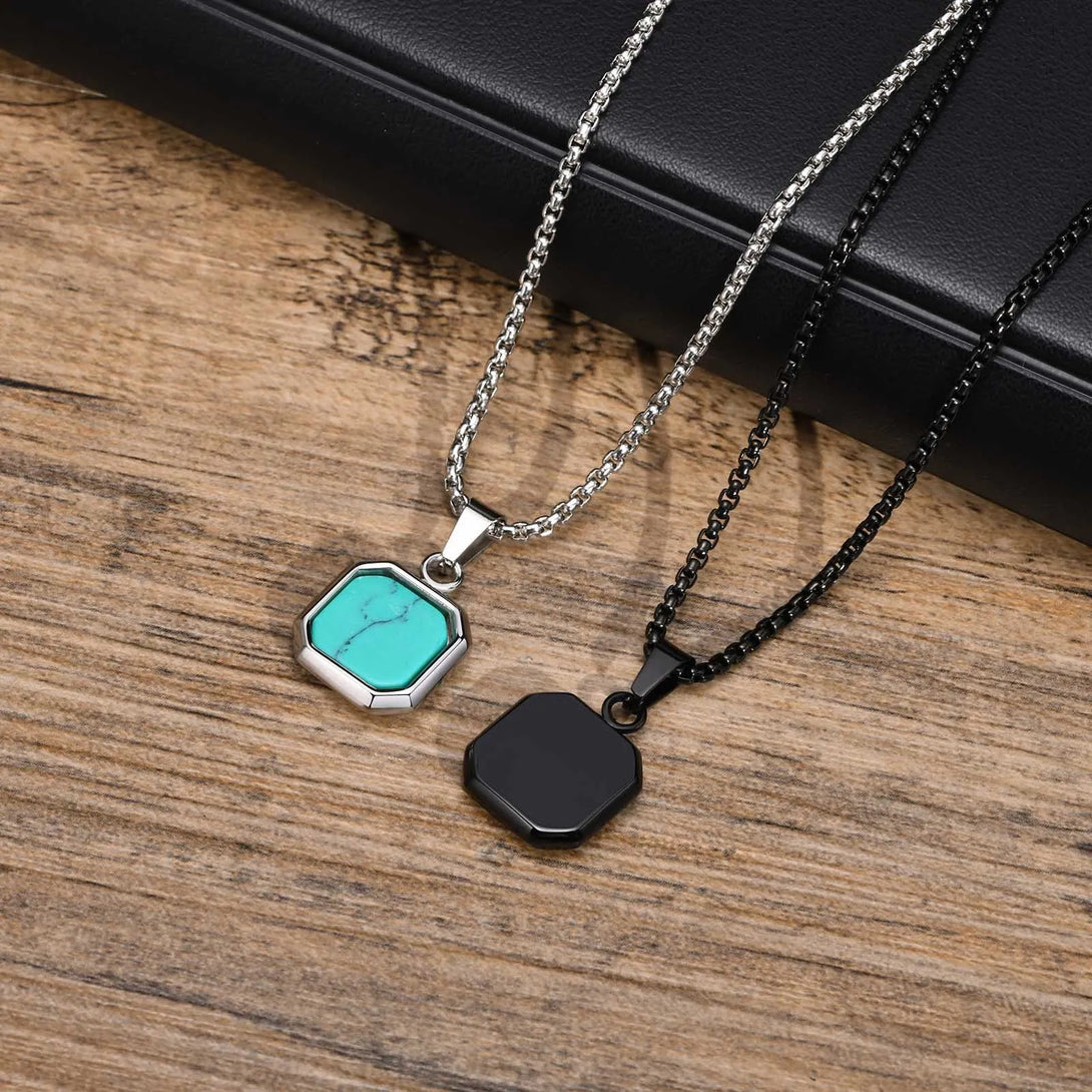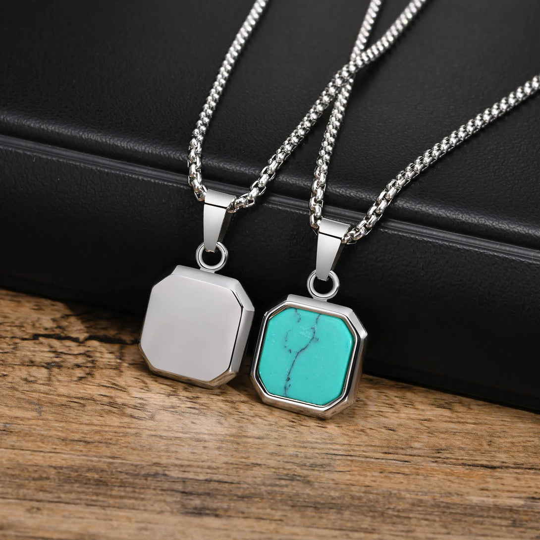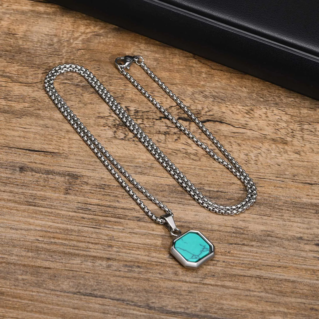 Collar con colgante cuadrado para hombre, de acero inoxidable de 15 mm, con elegante colgante geométrico turquesa.