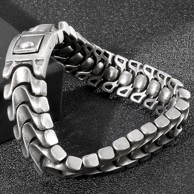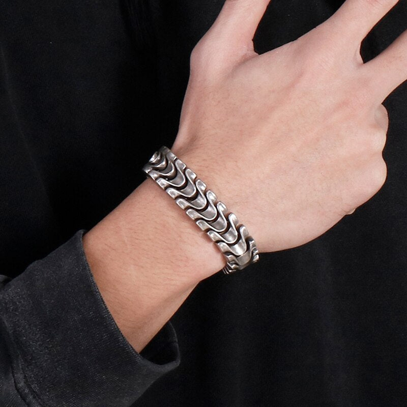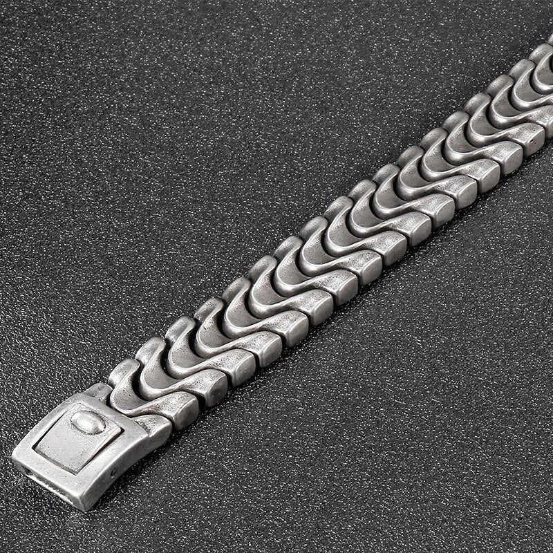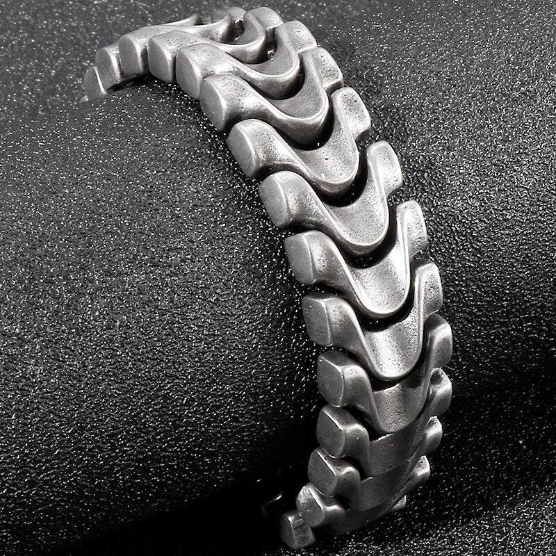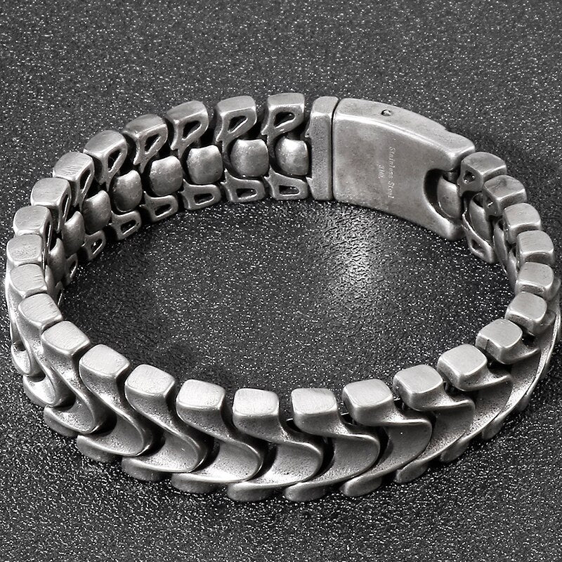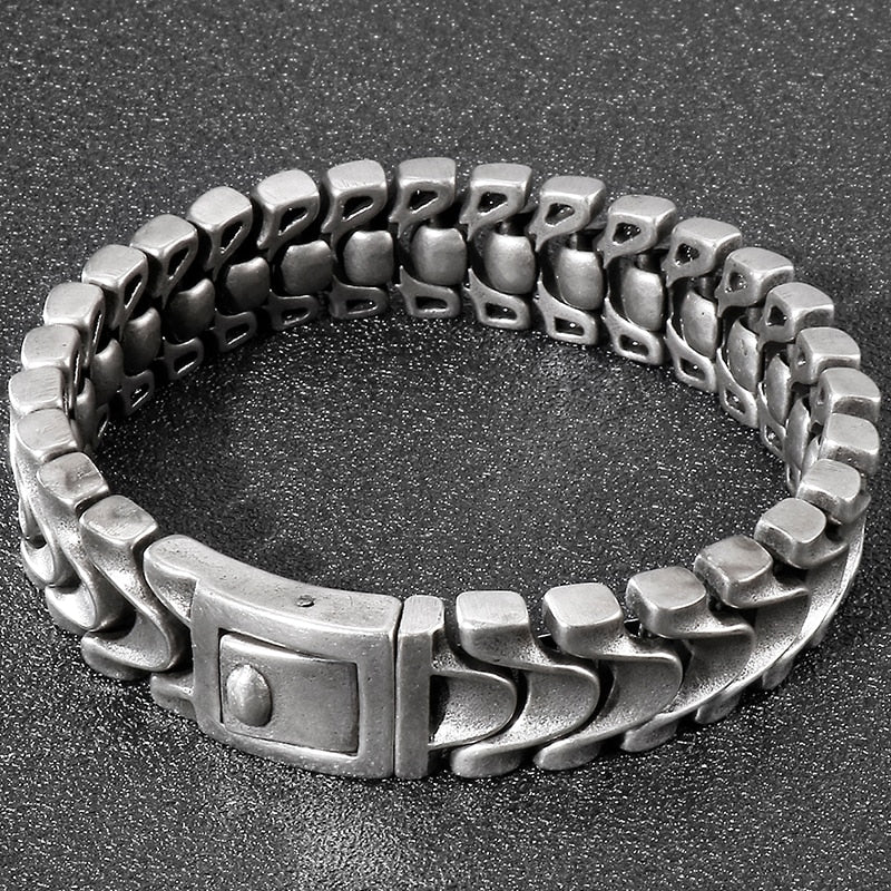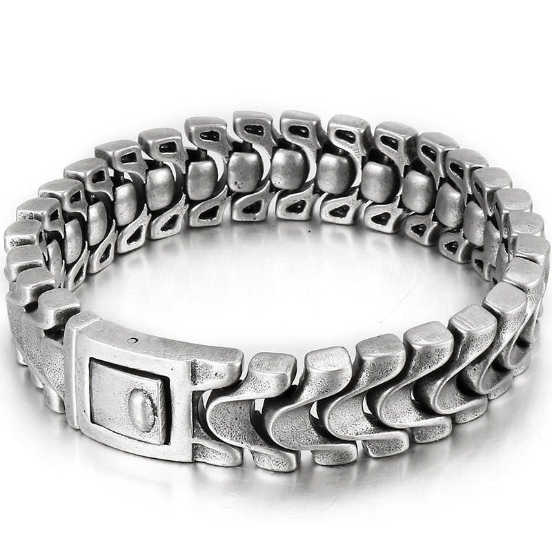 Pulsera de cadena de quilla de acero inoxidable para hombre, 16 mm, 8,46 pulgadas, color plata antigua, estilo vintage.