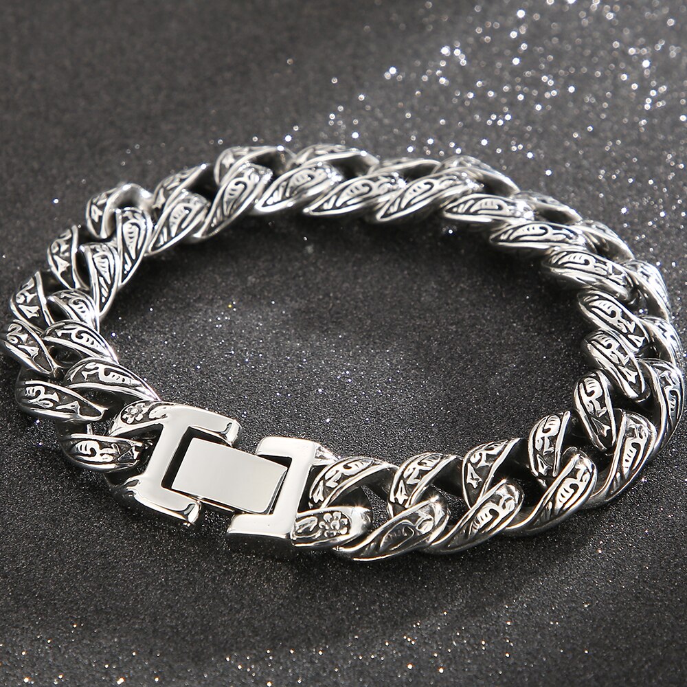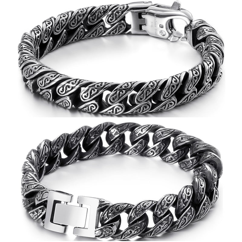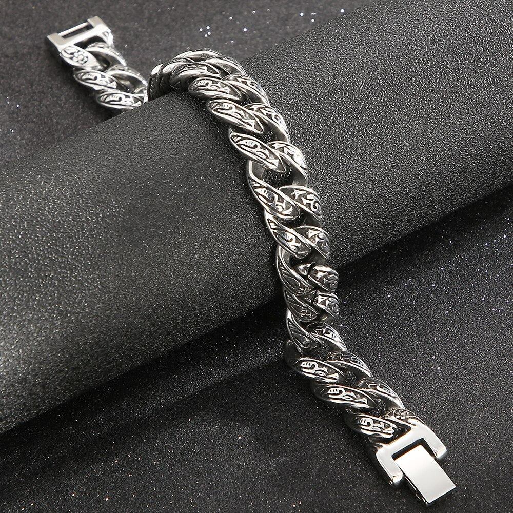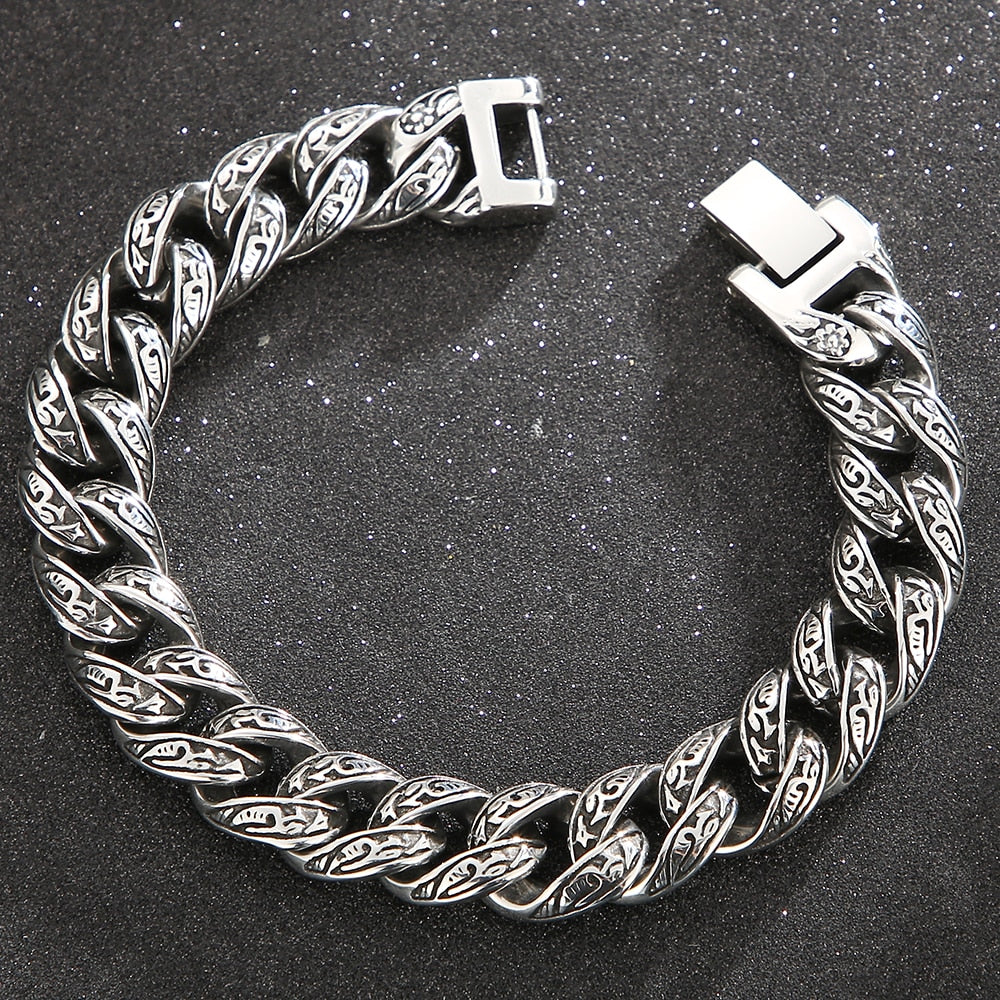 Pulsera de eslabones cubanos de acero inoxidable para hombre con diseño de tatuaje tribal, 18-24 cm de largo y 12 mm de ancho, estilo retro, regalo.