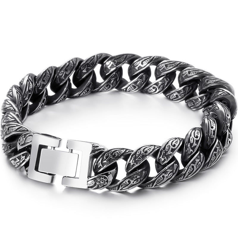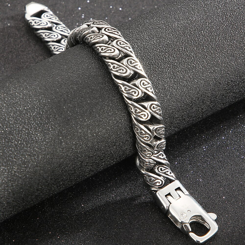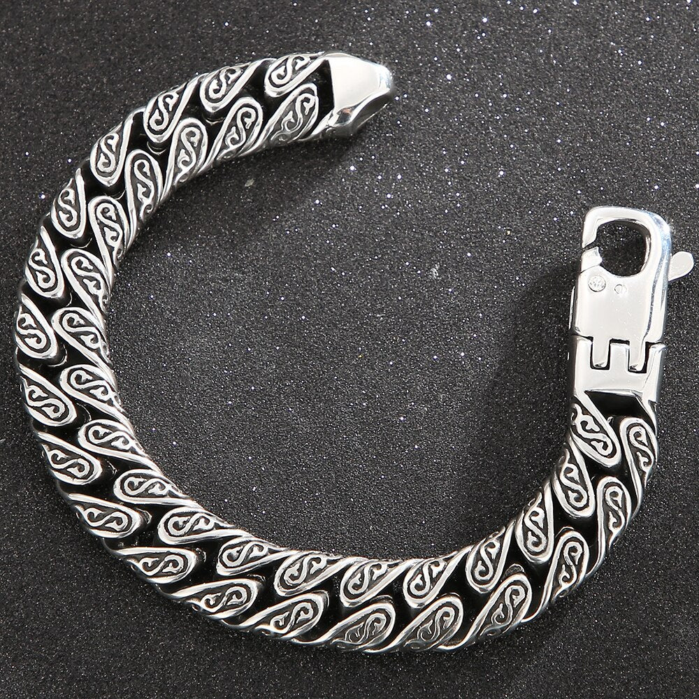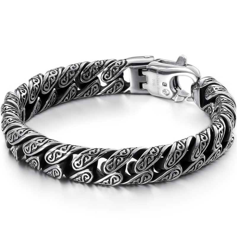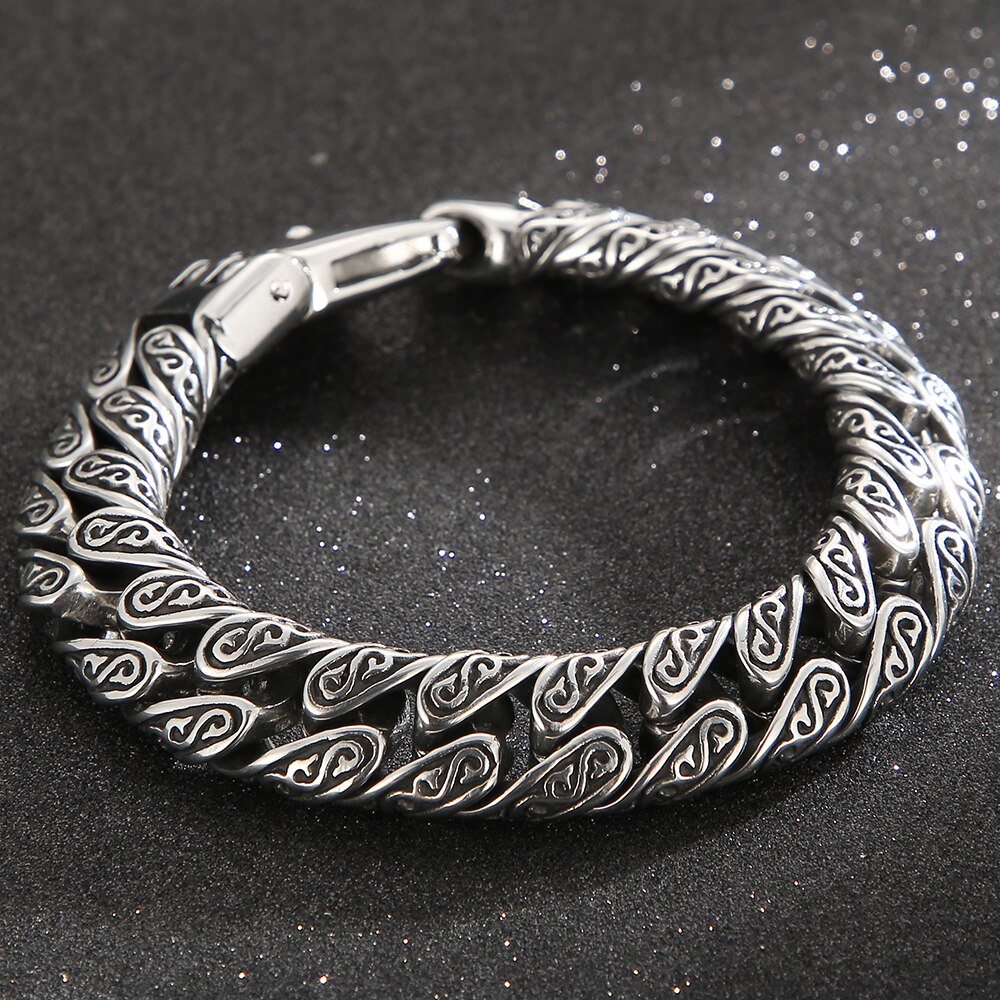 Pulsera de eslabones cubanos de acero inoxidable para hombre con diseño de tatuaje tribal, 18-24 cm de largo y 12 mm de ancho, estilo retro, regalo.