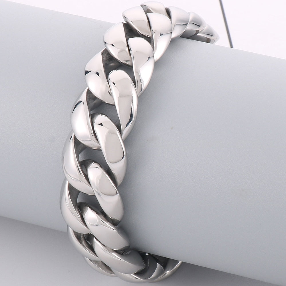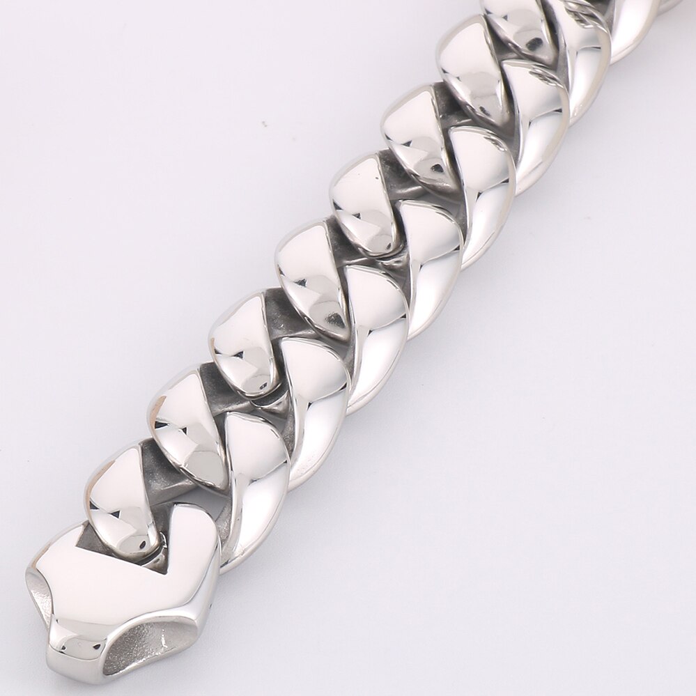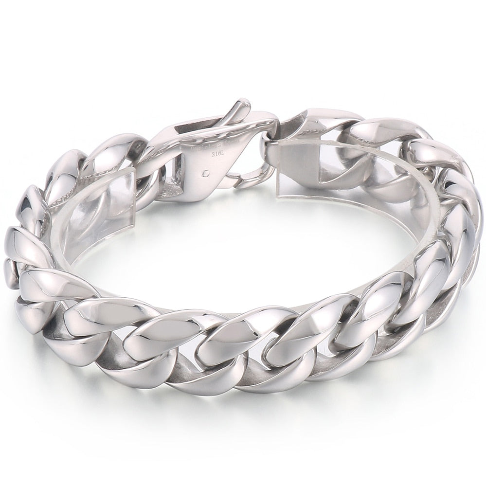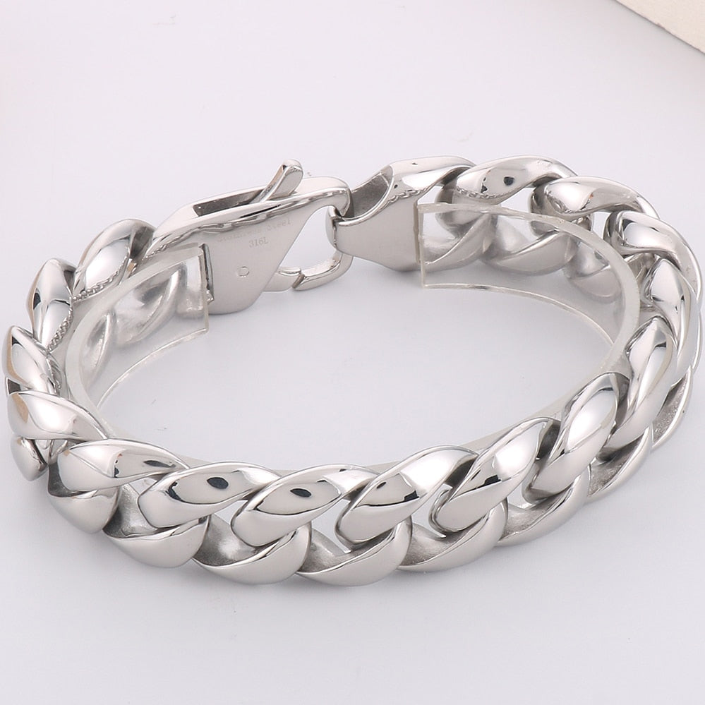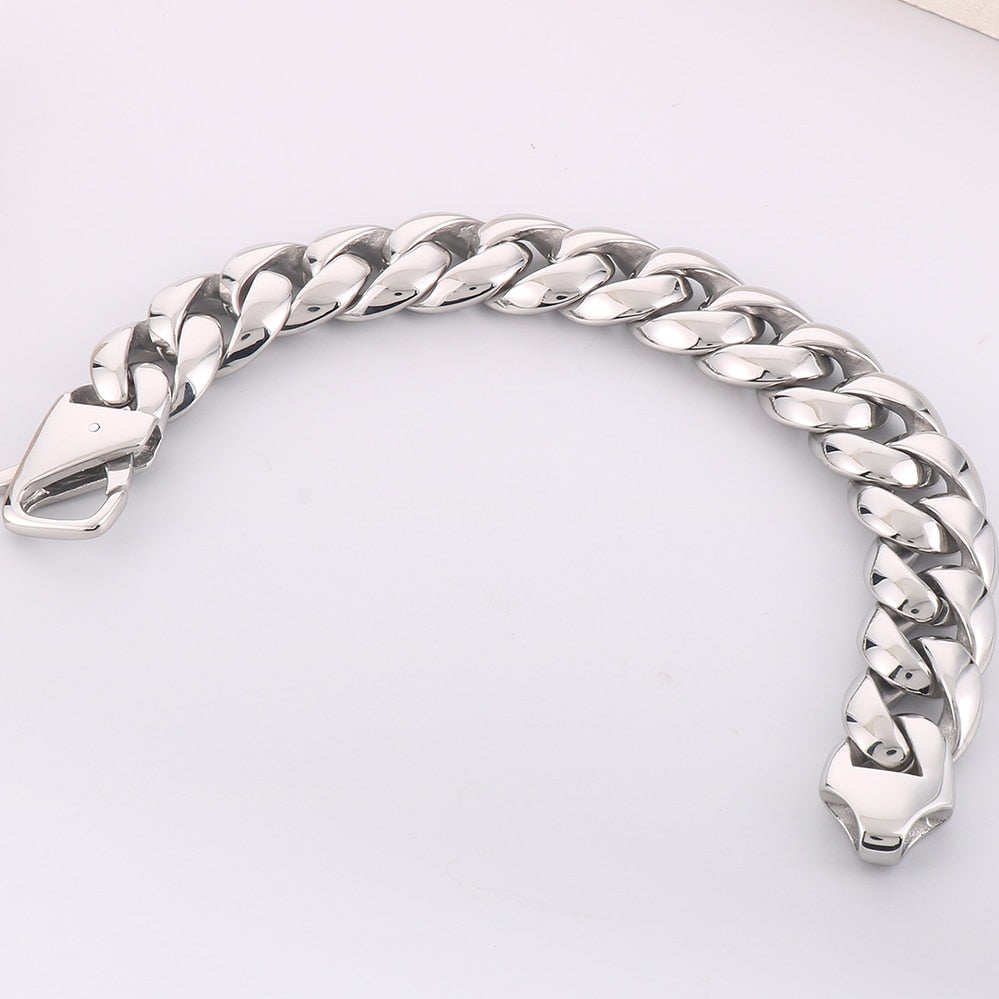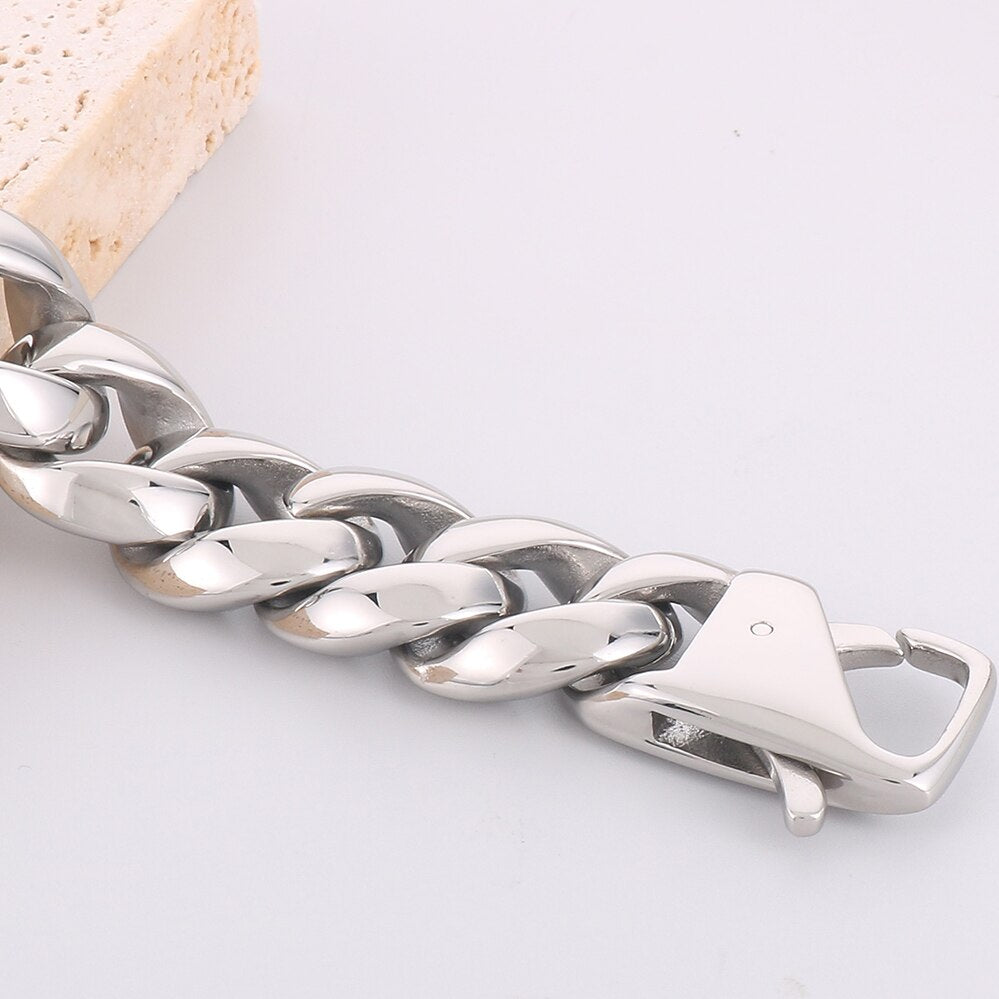 Pulsera de cadena de eslabones cubanos de acero inoxidable para hombre, joyería de metal pulido de alta calidad, grabable, regalo de cumpleaños para niños.