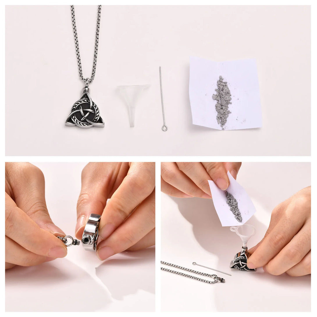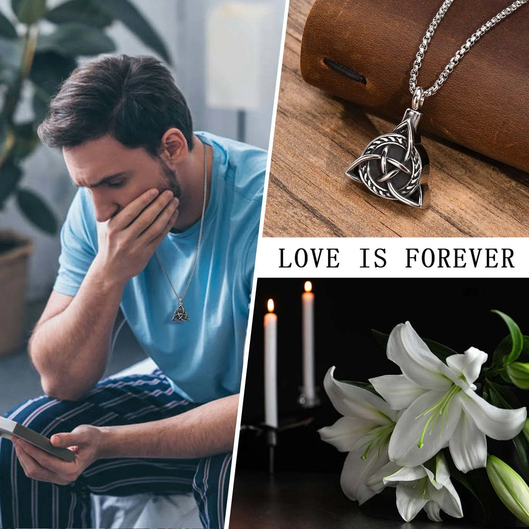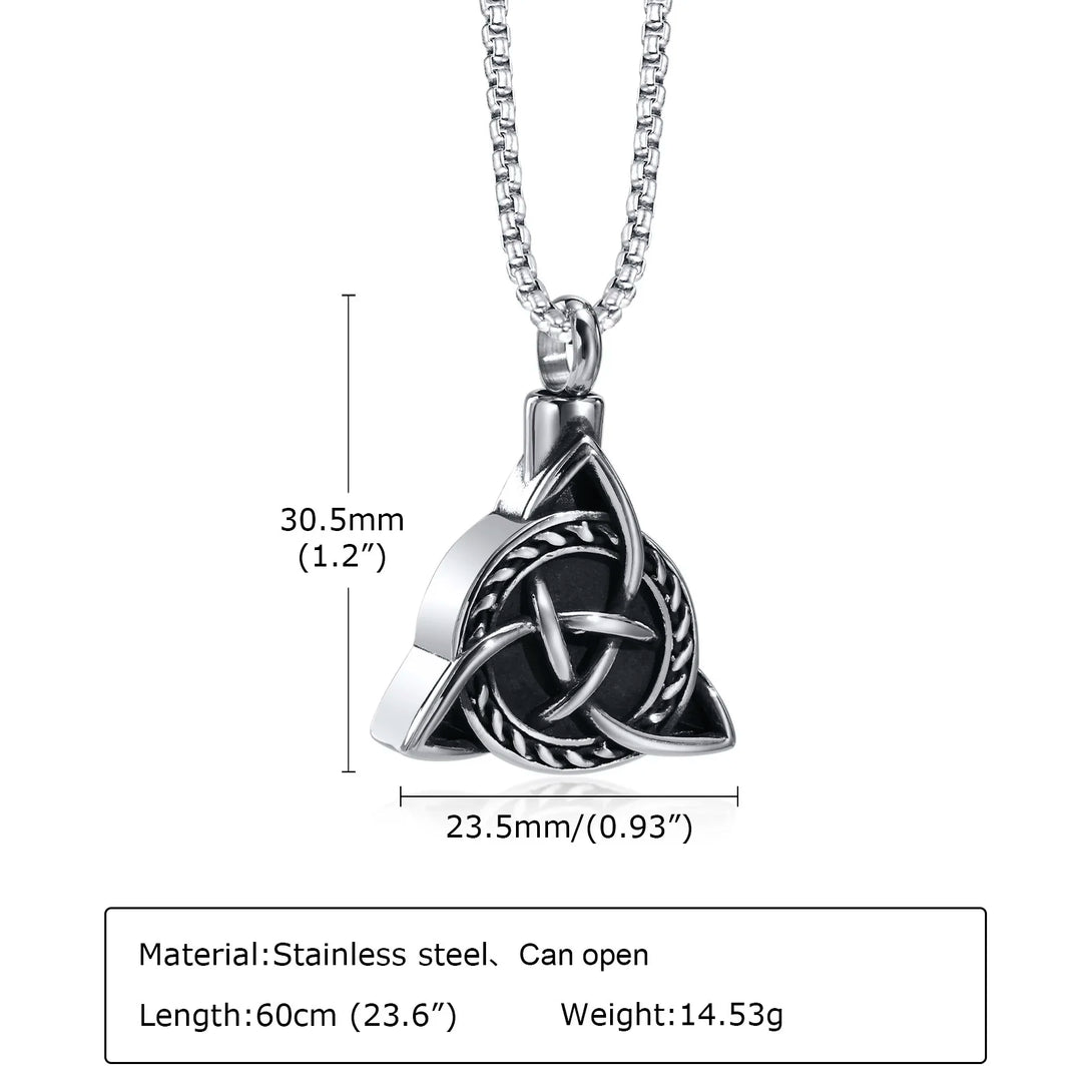 Collar de urna para cenizas para hombre, colgante de cremación conmemorativo de acero inoxidable con nudo celta tribal.