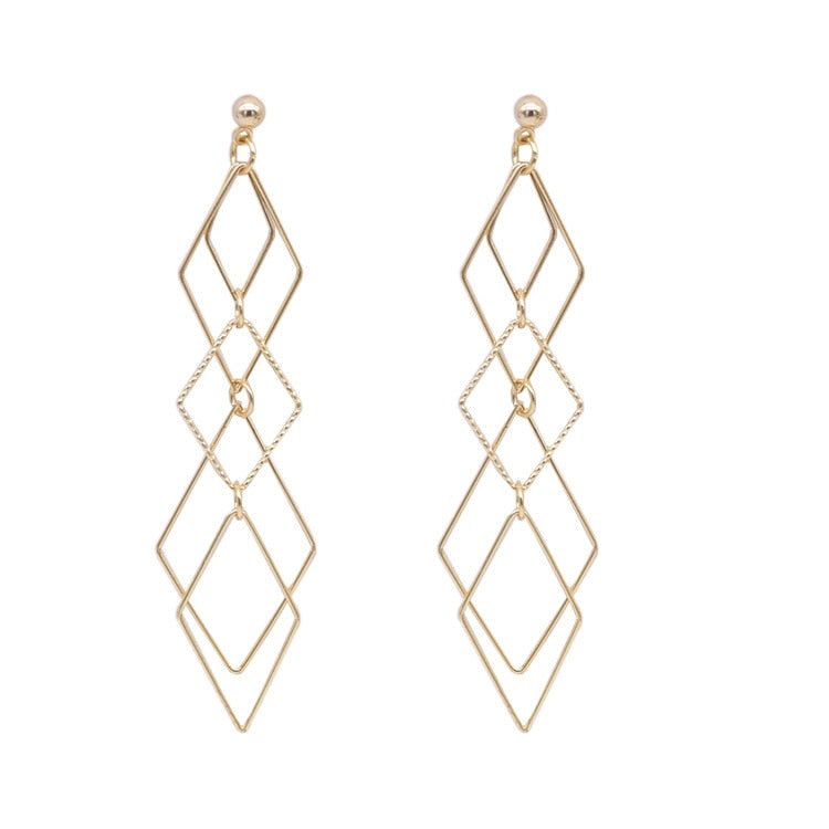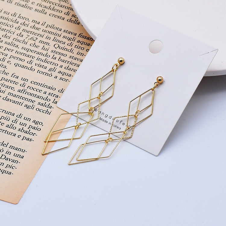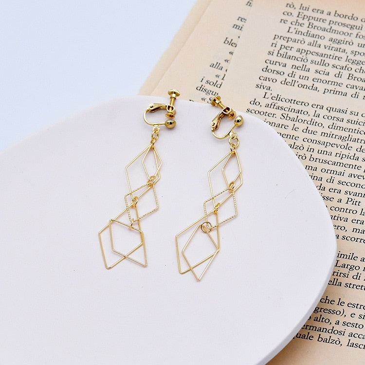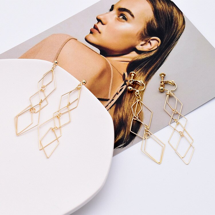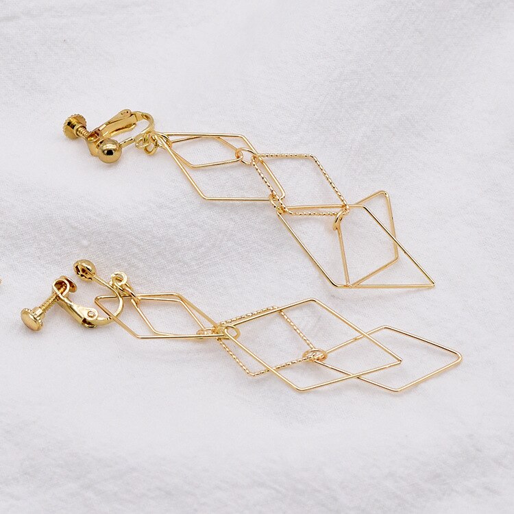 Pendientes de clip de rombo metálico sin agujero, pendientes geométricos sin perforación