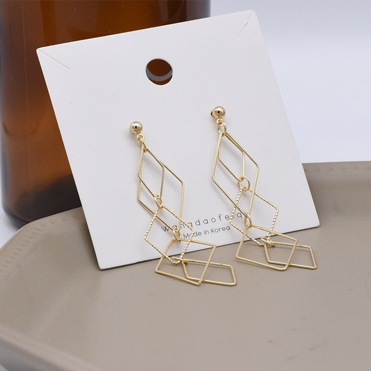 Pendientes de moda: aretes de clip de rombo metálico sin agujero, aretes geométricos sin perforación, aretes con personalidad.