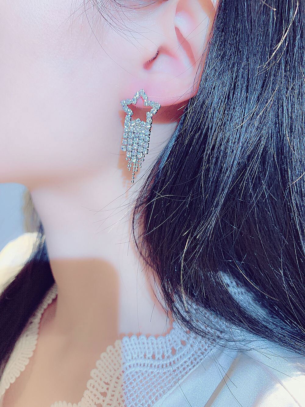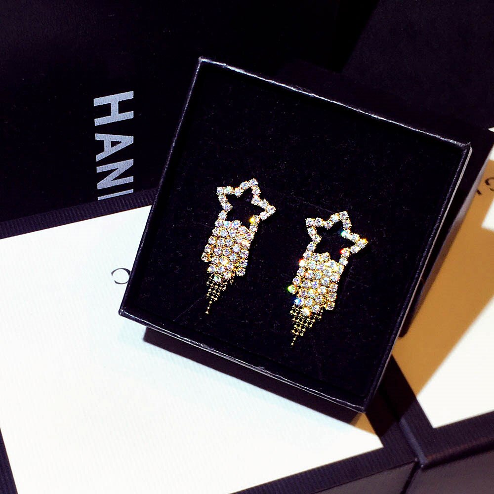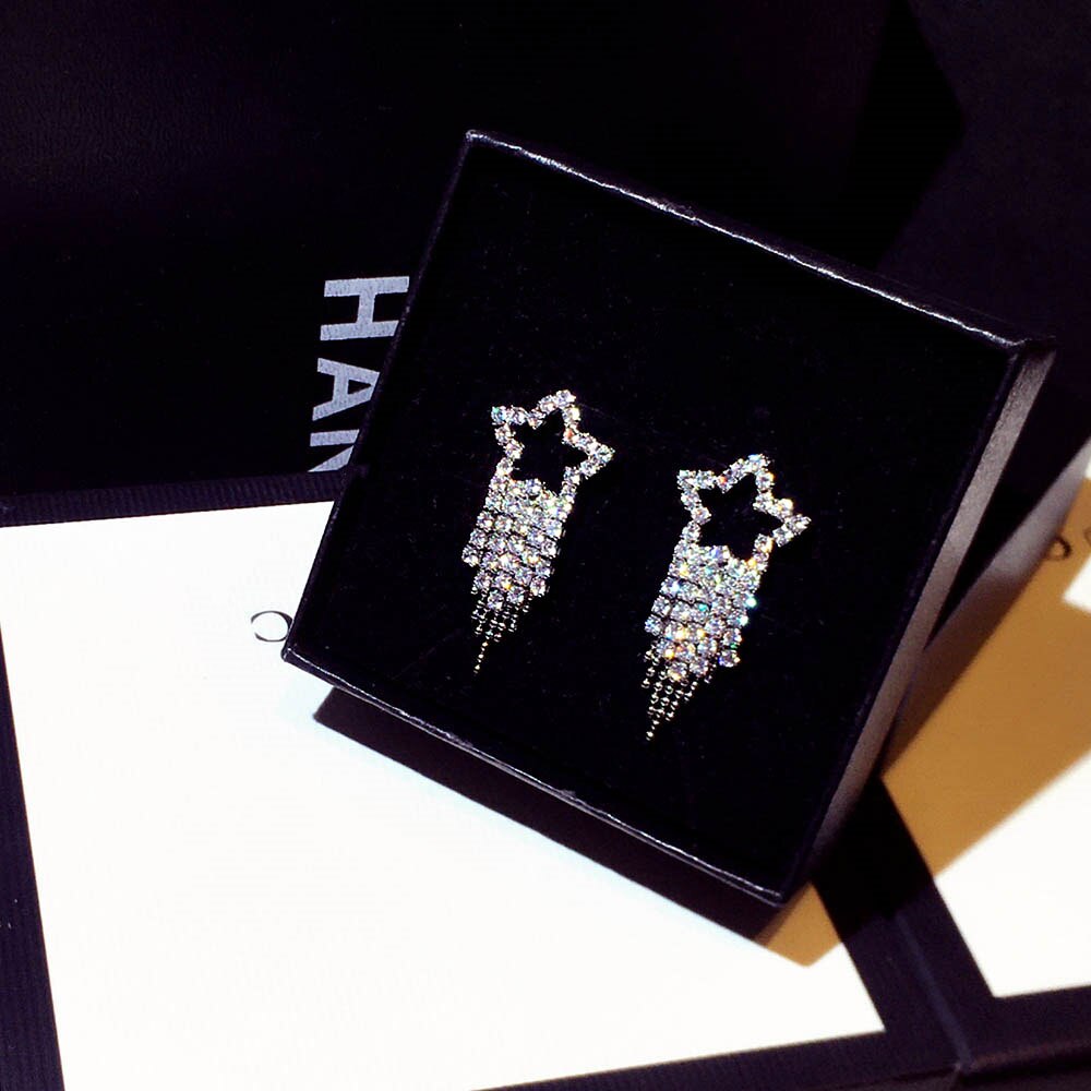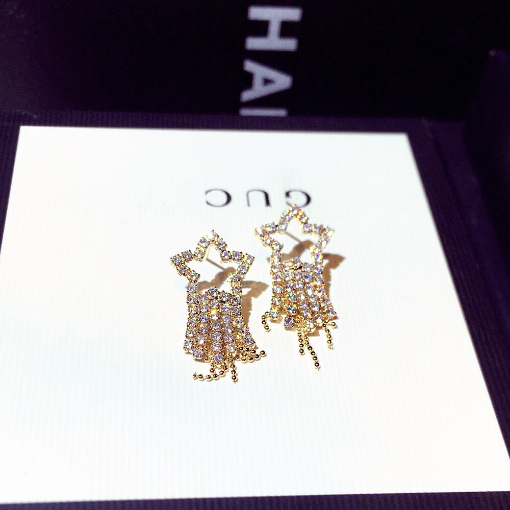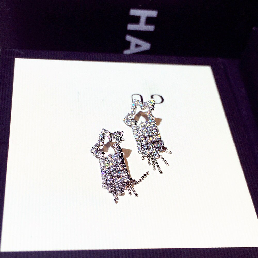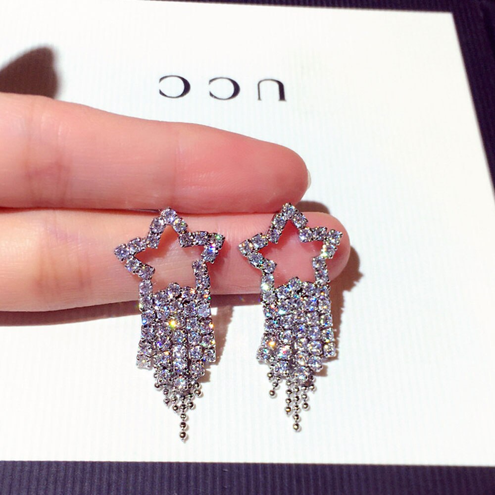 Pendientes de moda con microincrustaciones de diamantes de imitación para mujer, con temperamento de estrellas, largos, elegantes, románticos, de lujo, bonitos.