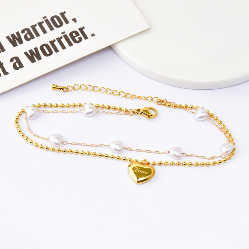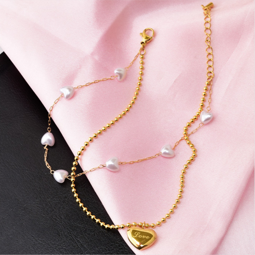 Tobilleras de acero inoxidable 316L, joyería minimalista con forma de corazón, perla tallada, cadena con dije de amor para mujer.