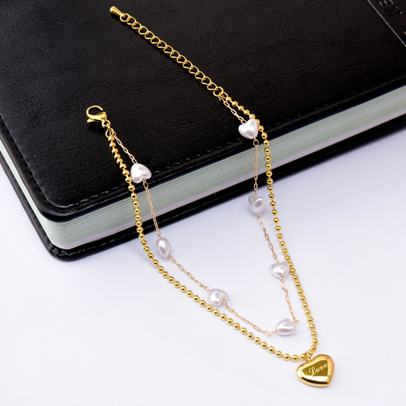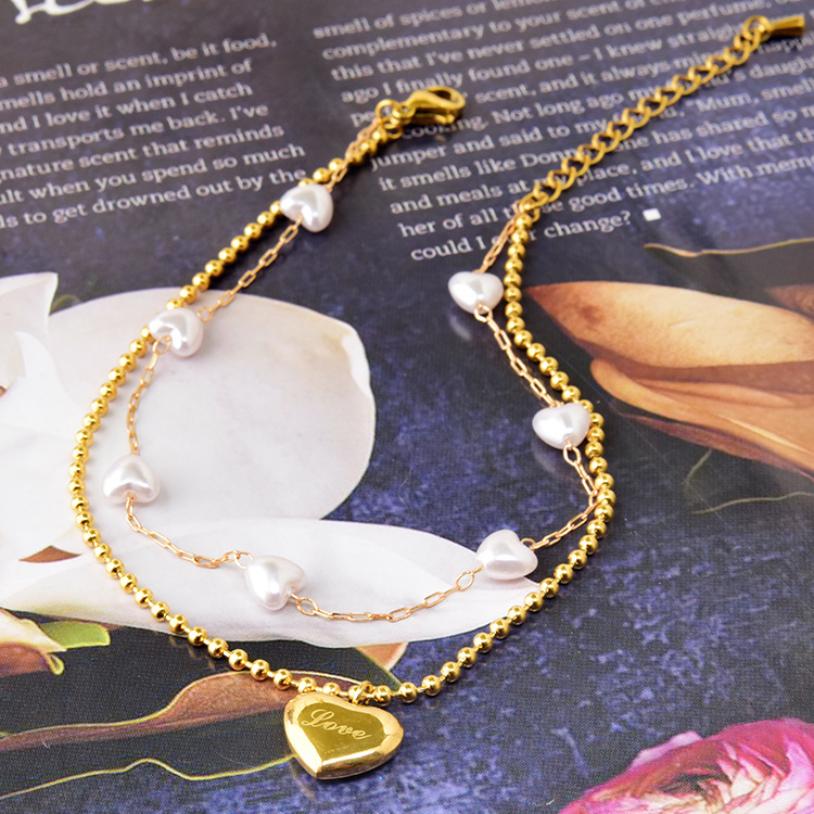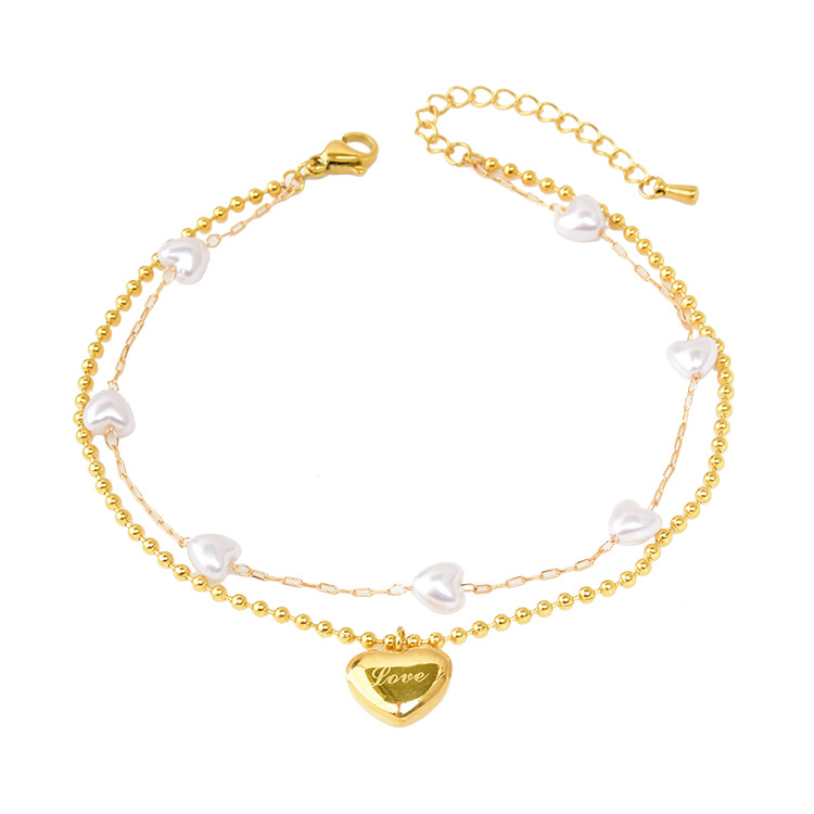 Tobillera minimalista con forma de corazón y perla tallada, con dije de amor para mujer