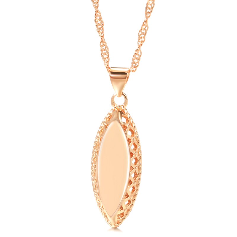 Joyería de oro 585: collares colgantes rómbicos con cadena ondulada de diseño minimalista, color oro rosa 585, joyería fina vintage de moda, collares elegantes para mujer.