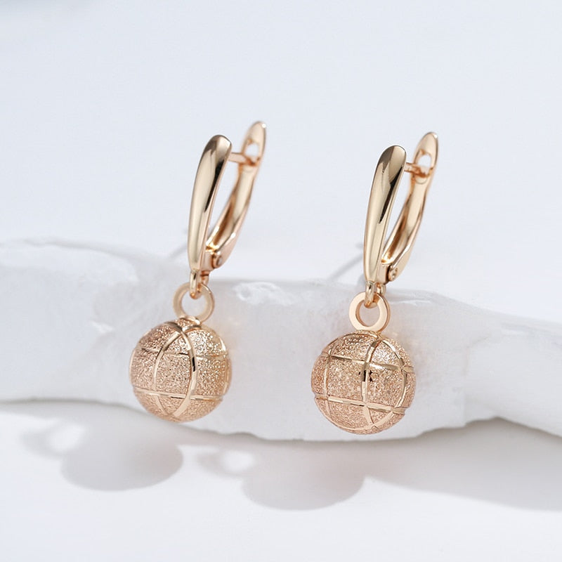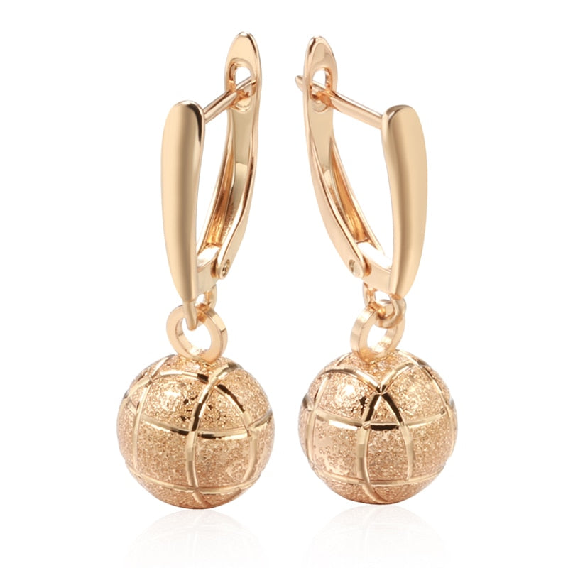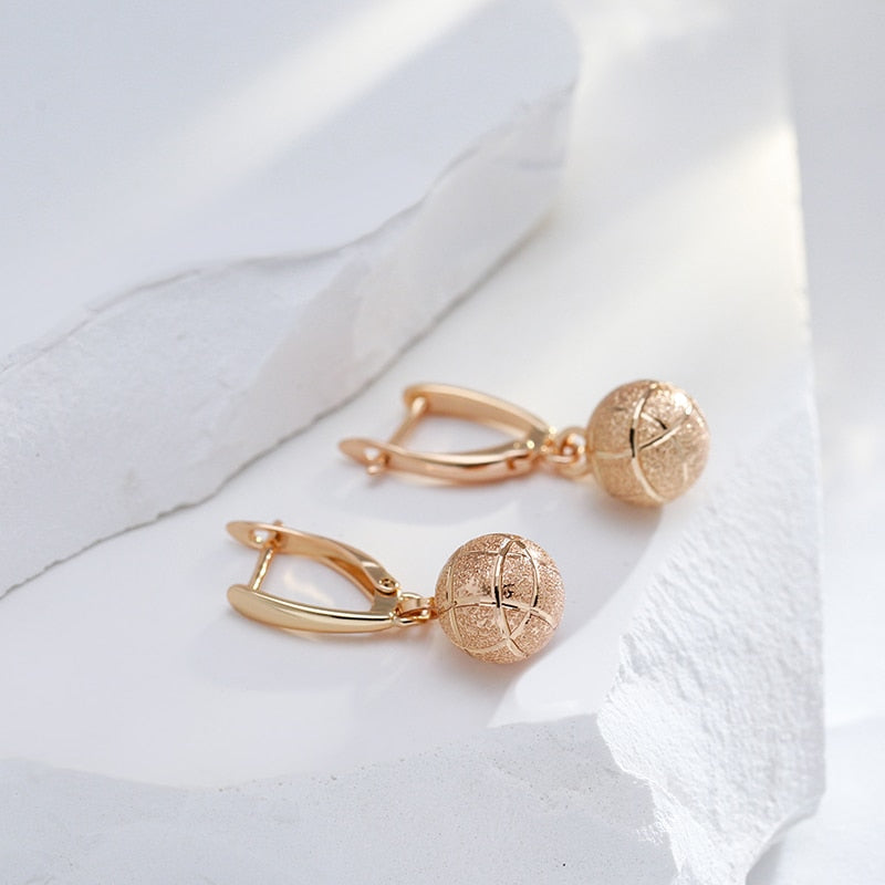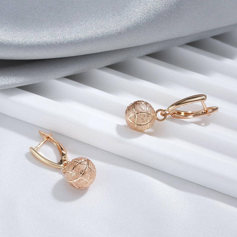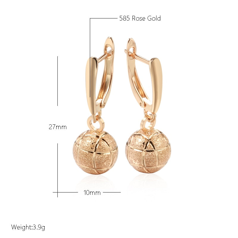 Pendientes colgantes minimalistas de bola de metal con textura esmerilada en color oro 585