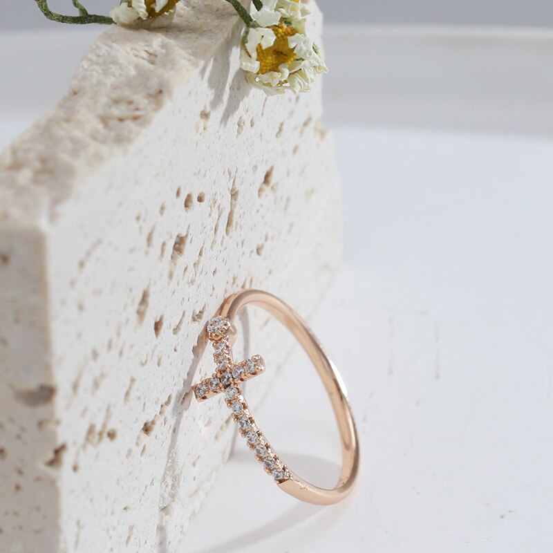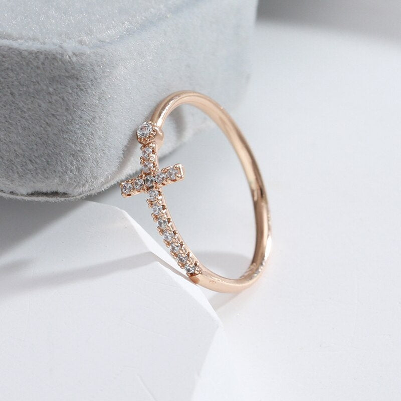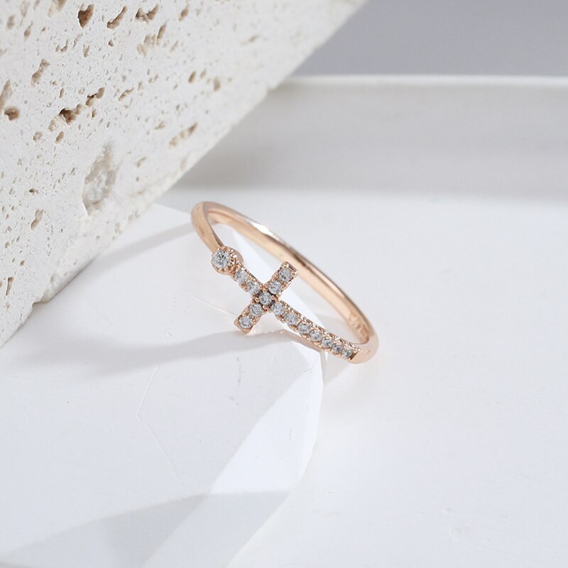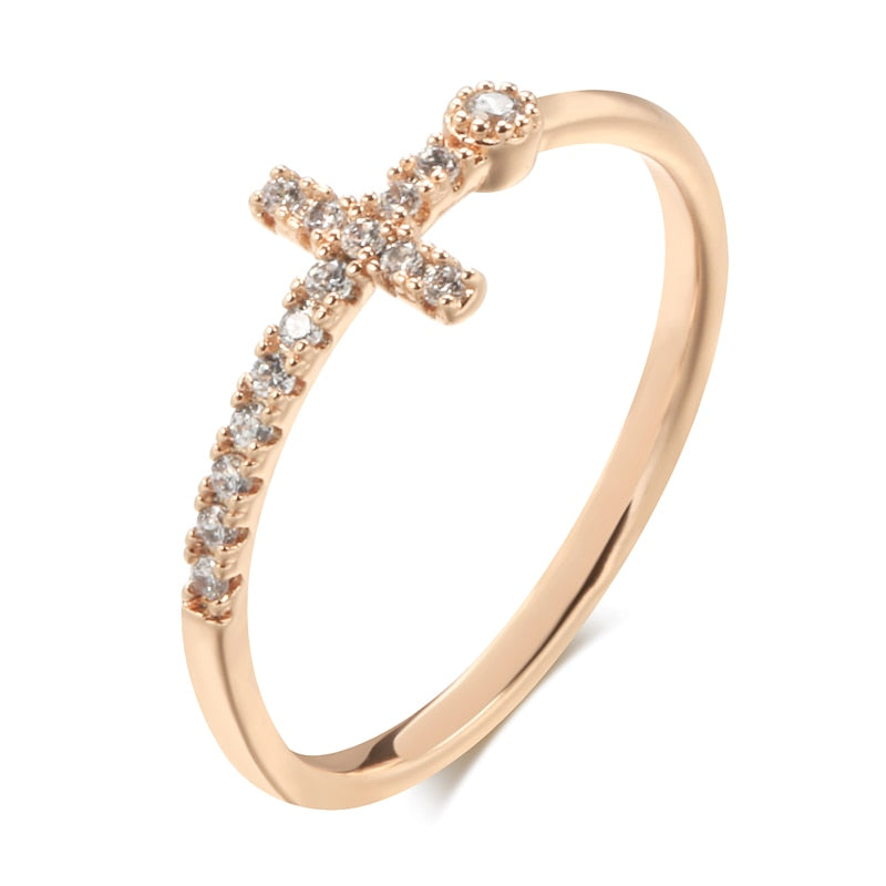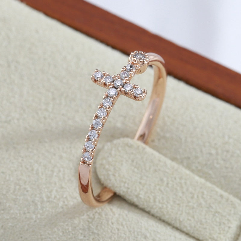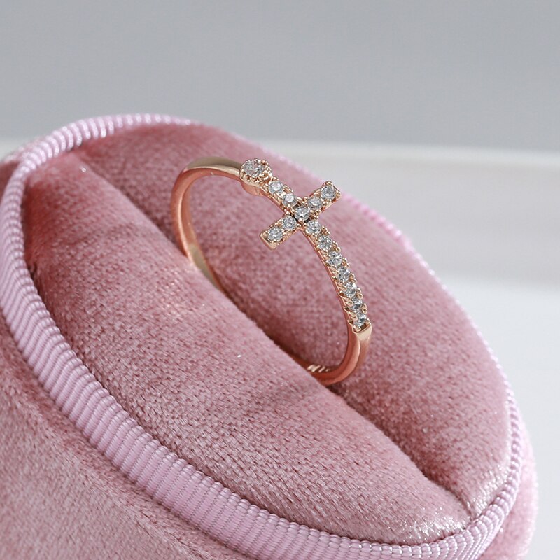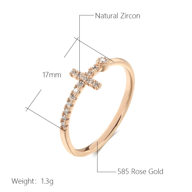 Anillo minimalista de oro 585 con cruz de circón para mujer, diseño fino, color oro rosa 585, joyería de moda, anillos para bodas y fiestas, accesorios.