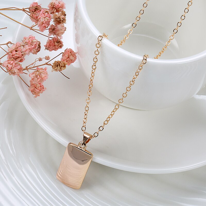 Joyería de oro 585: collar minimalista con colgante brillante, chapado en oro 585, estilo moderno, geométrico, oro rosa, tendencia de verano.