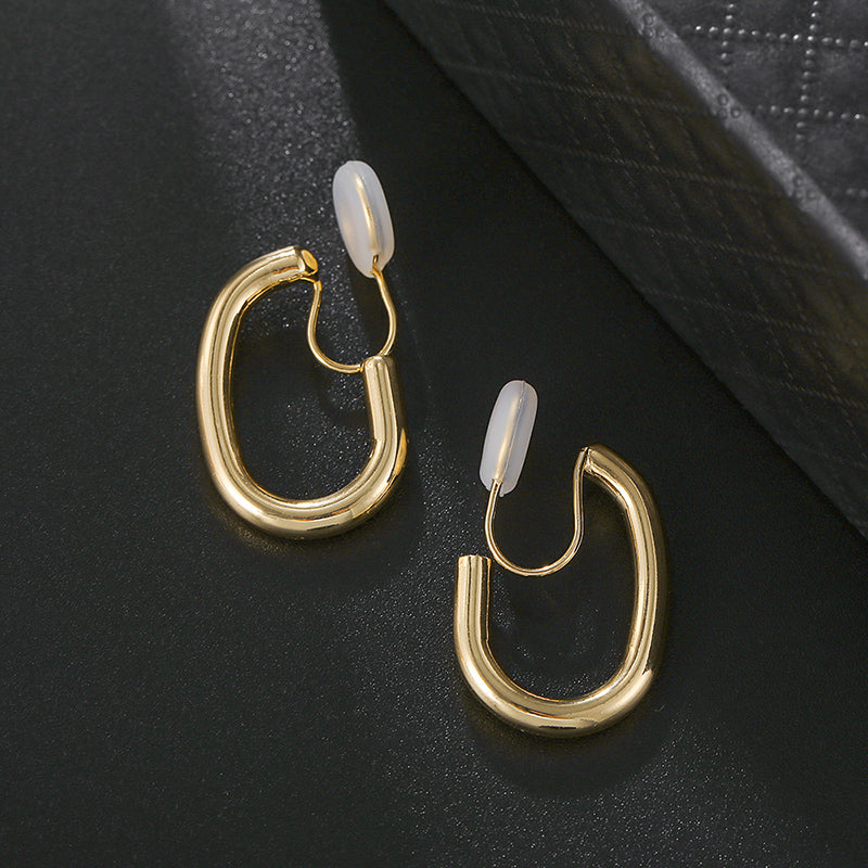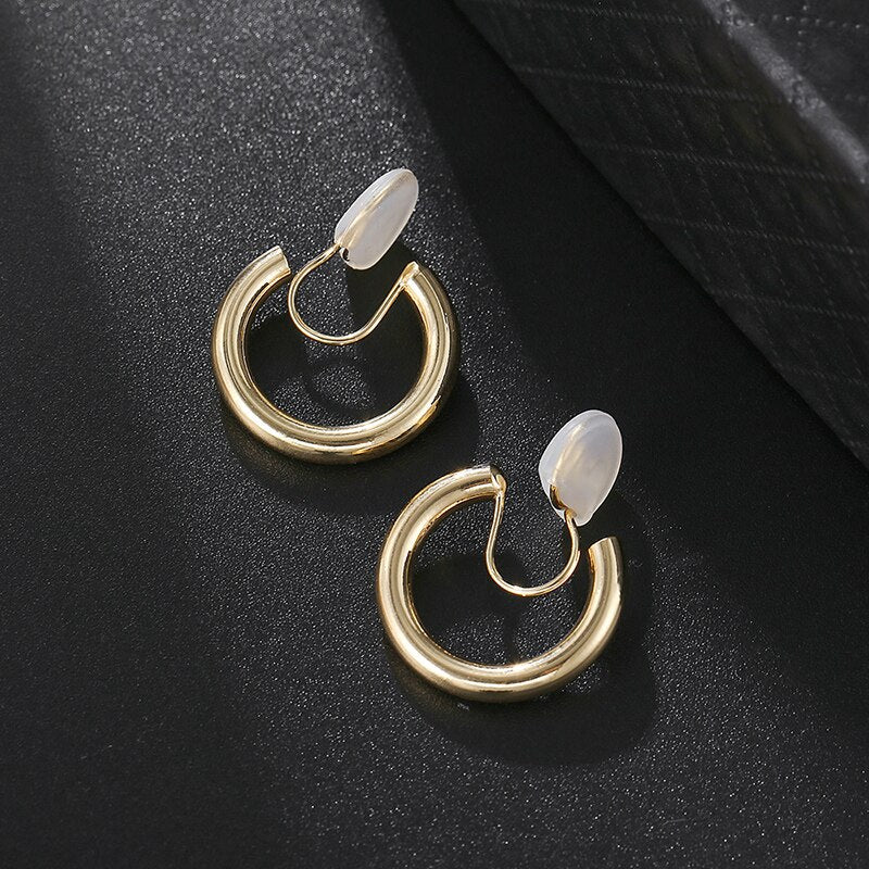Pendientes de moda: minimalistas, de cobre dorado, de metal liso, con forma de C, con clip, para mujer, estilo vintage, sin perforar.