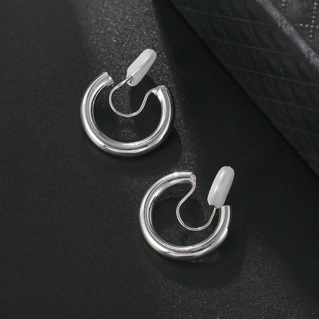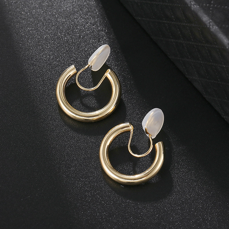 Pendientes de aro minimalistas con clip en forma de C de metal liso de cobre dorado