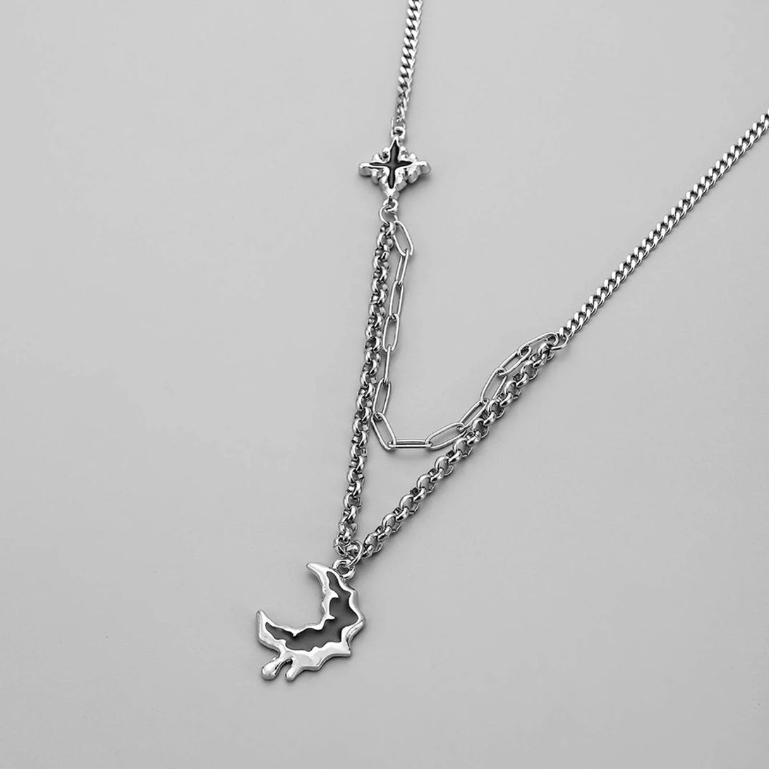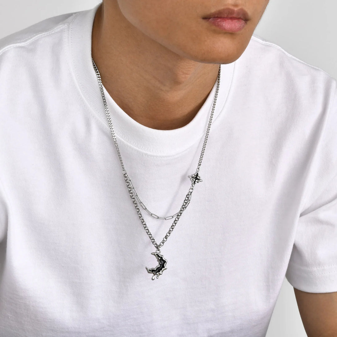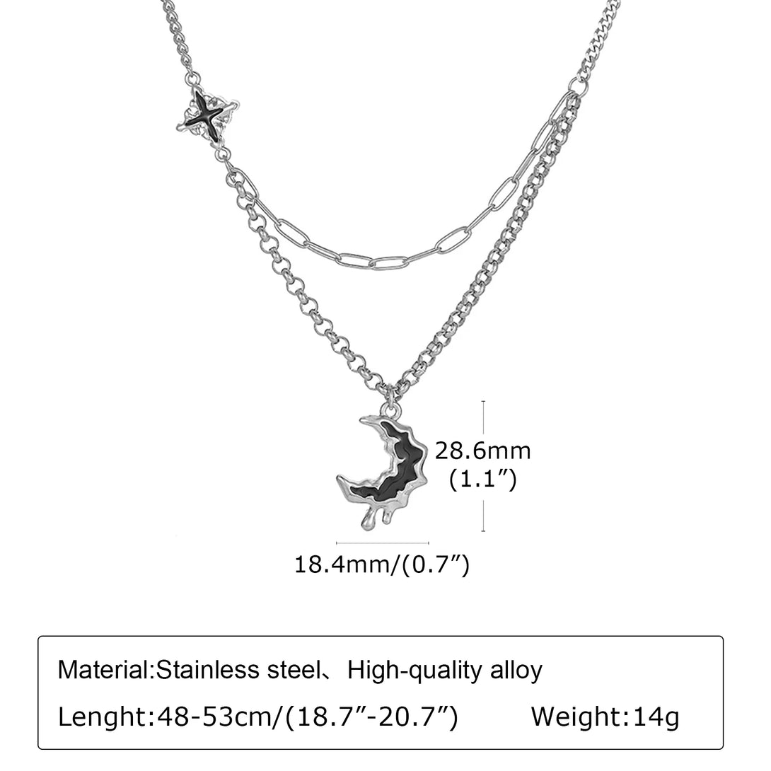Collares de luna y estrella para hombres y niños, cadena cubana de metal, eslabones de empalme en capas de moda.