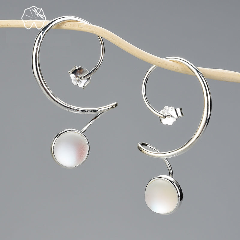 Pendientes de moda - Piedra lunar, diseño grande e inusual, pendientes colgantes con piedra para mujer, joyería llamativa de plata de ley 925 auténtica.