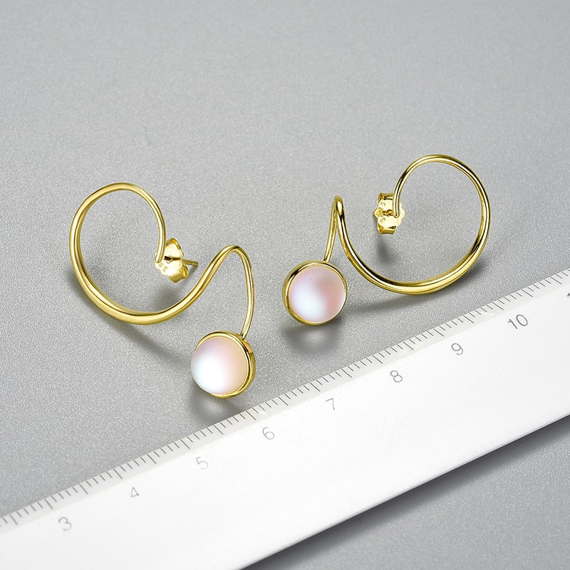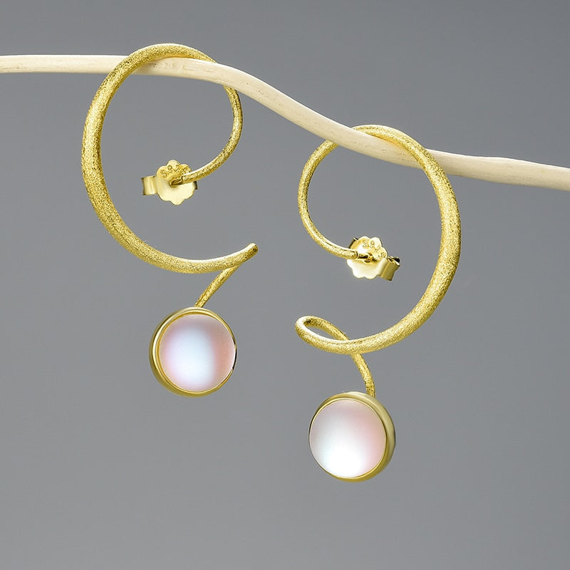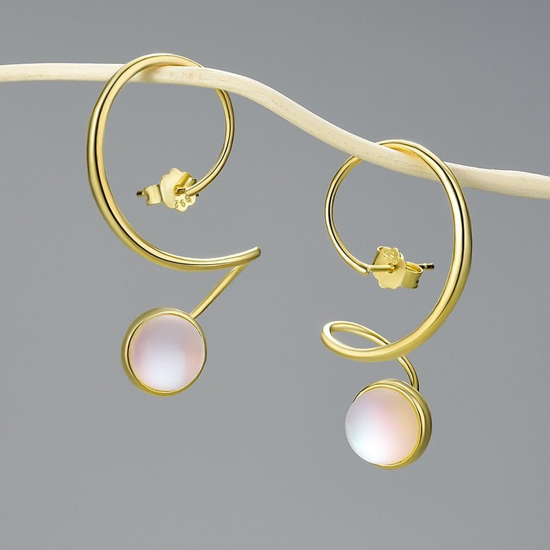 Pendientes colgantes de piedra lunar con diseño grande e inusual para mujer