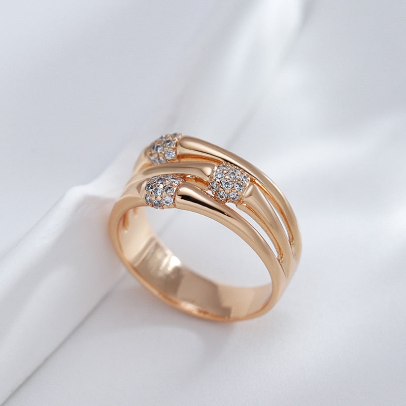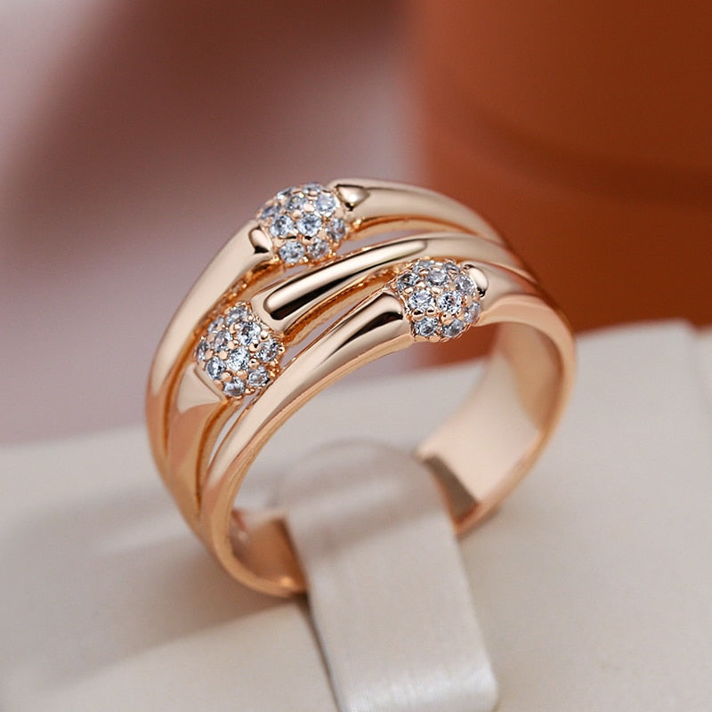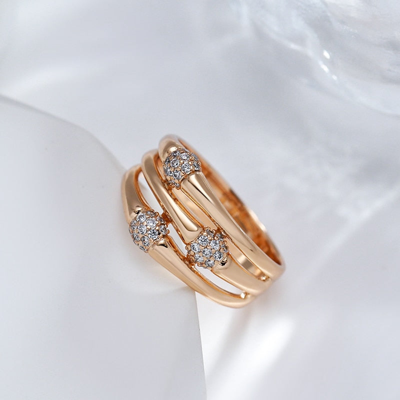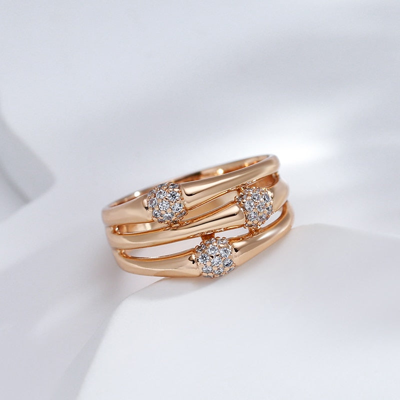 Anillos multicapa huecos con circonitas ovaladas de color oro 585 para mujer