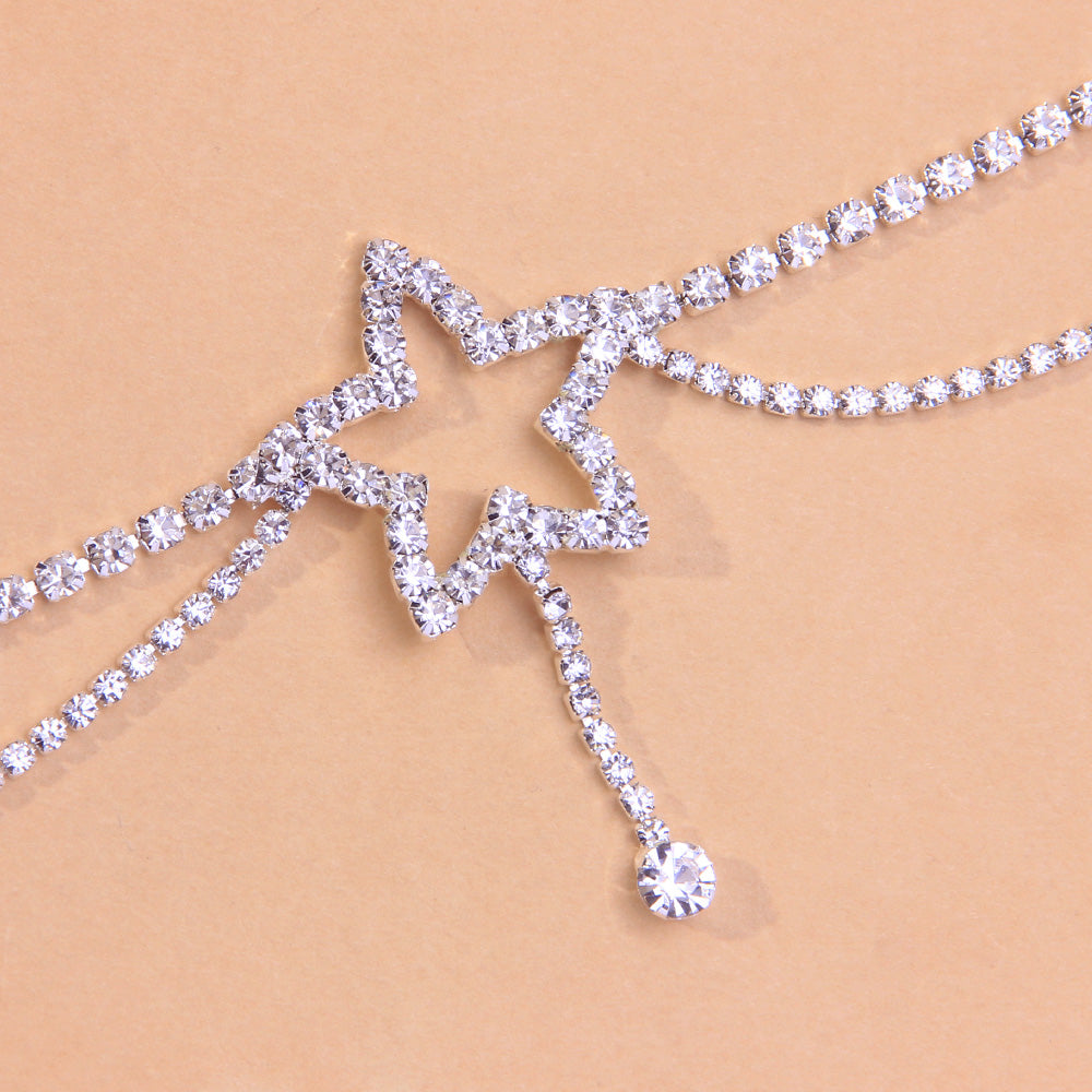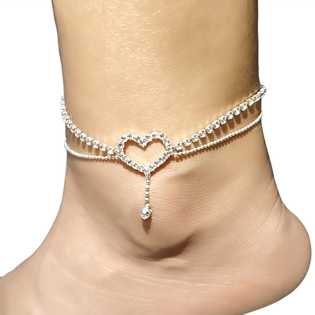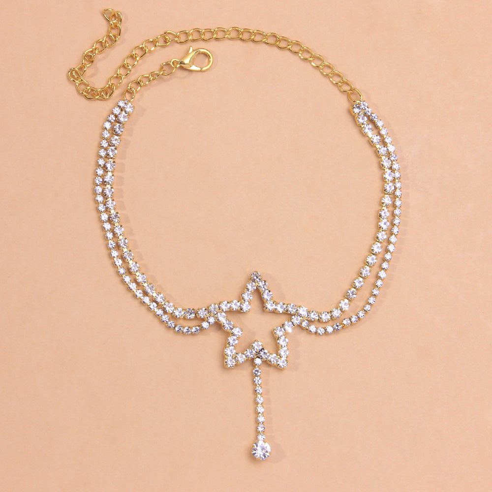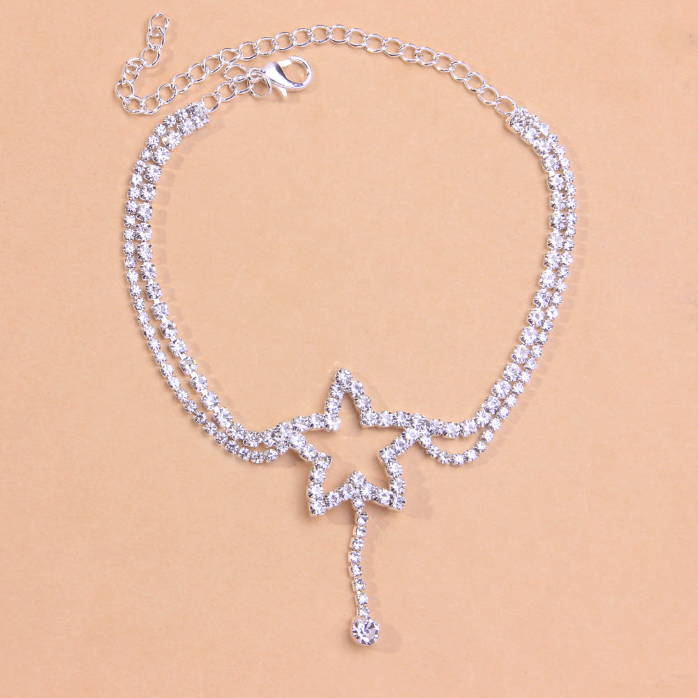 Tobilleras - Pulsera de cadena con forma de estrella multicapa para tobillo, venta al por mayor, para mujer, cristal de lujo, regalo de joyería para playa de verano.