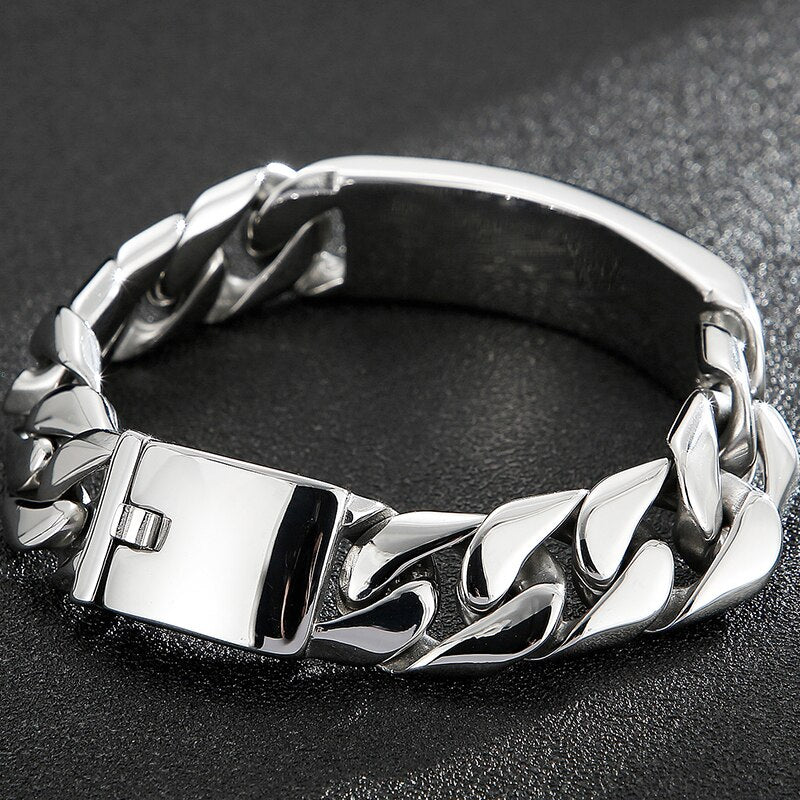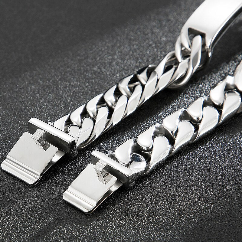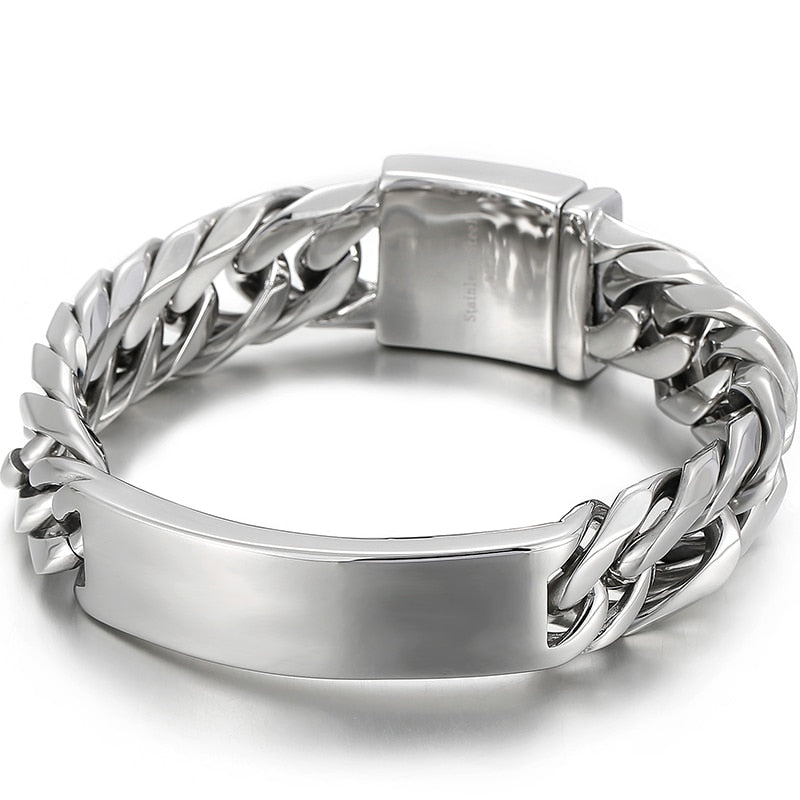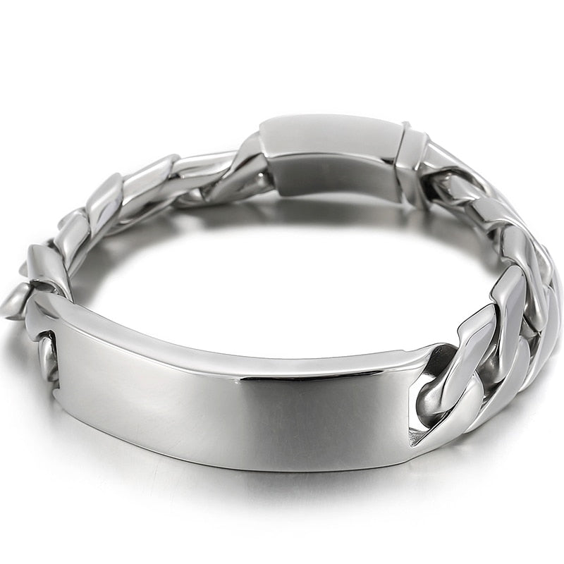 Pulsera de identificación con nombre para hombre, cadena de eslabones cubanos de acero inoxidable