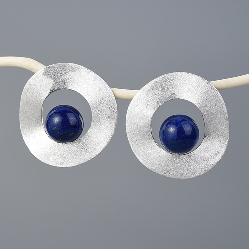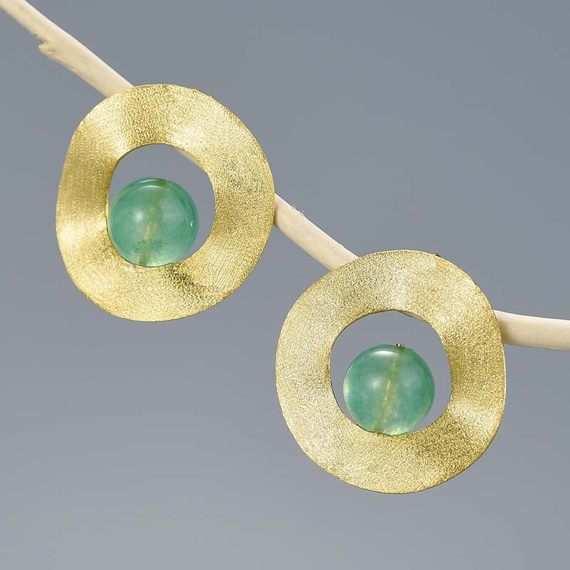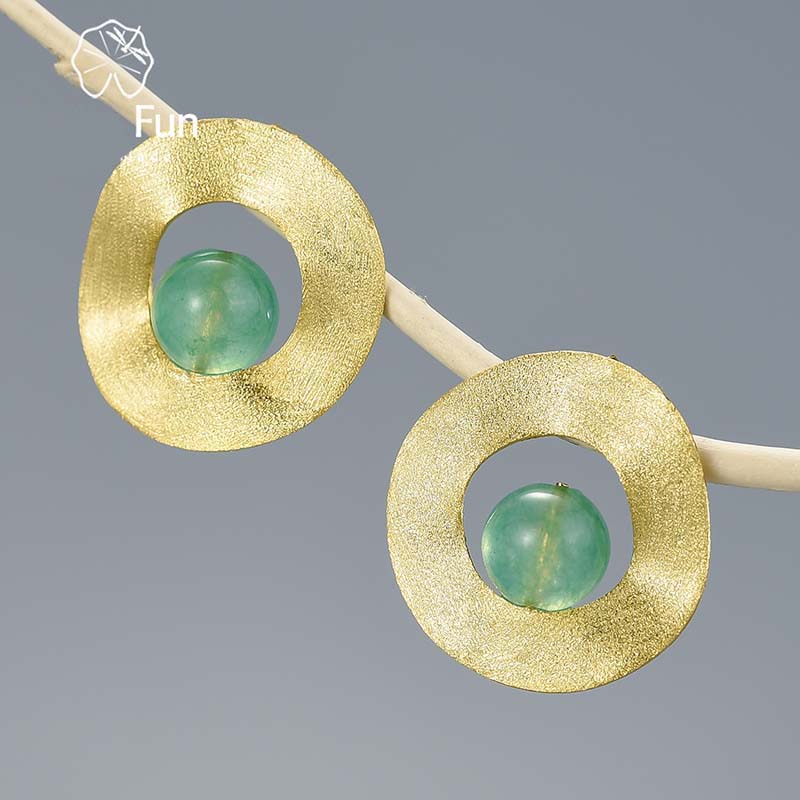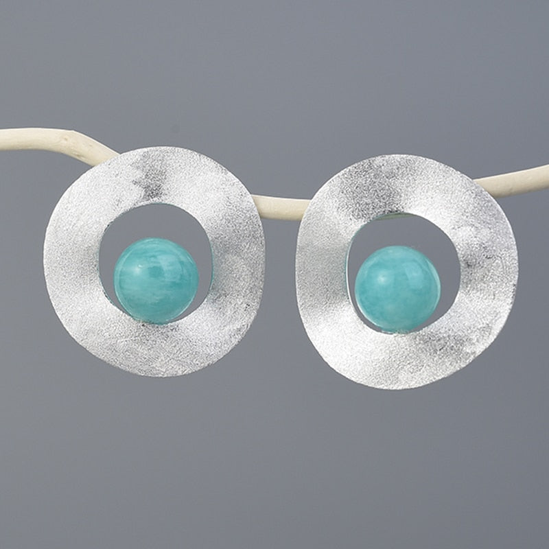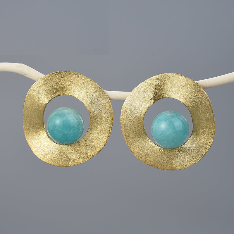 Pendientes minimalistas de piedras preciosas naturales con forma redonda irregular