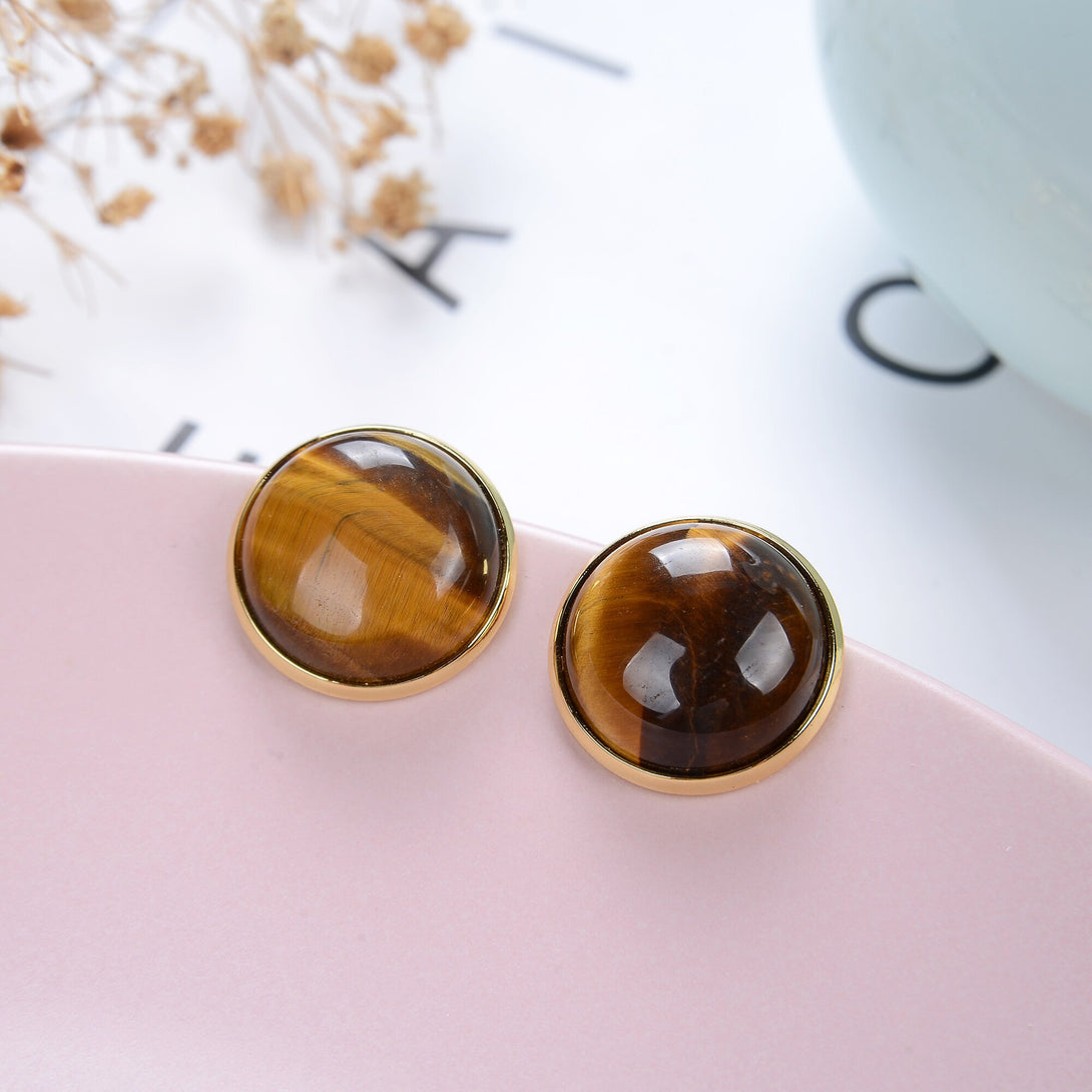 Pendientes de clip grandes y redondos de piedra natural con piedra de ojo de tigre sin perforar