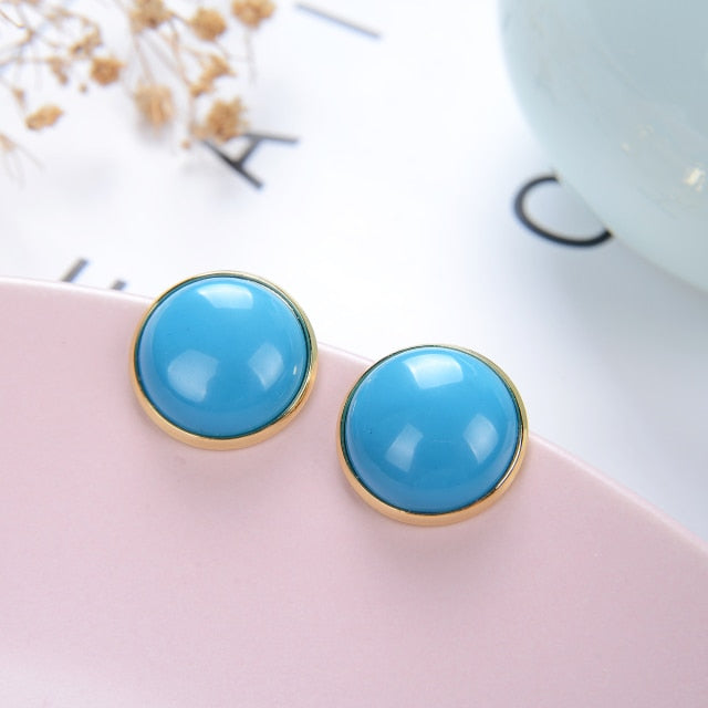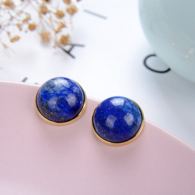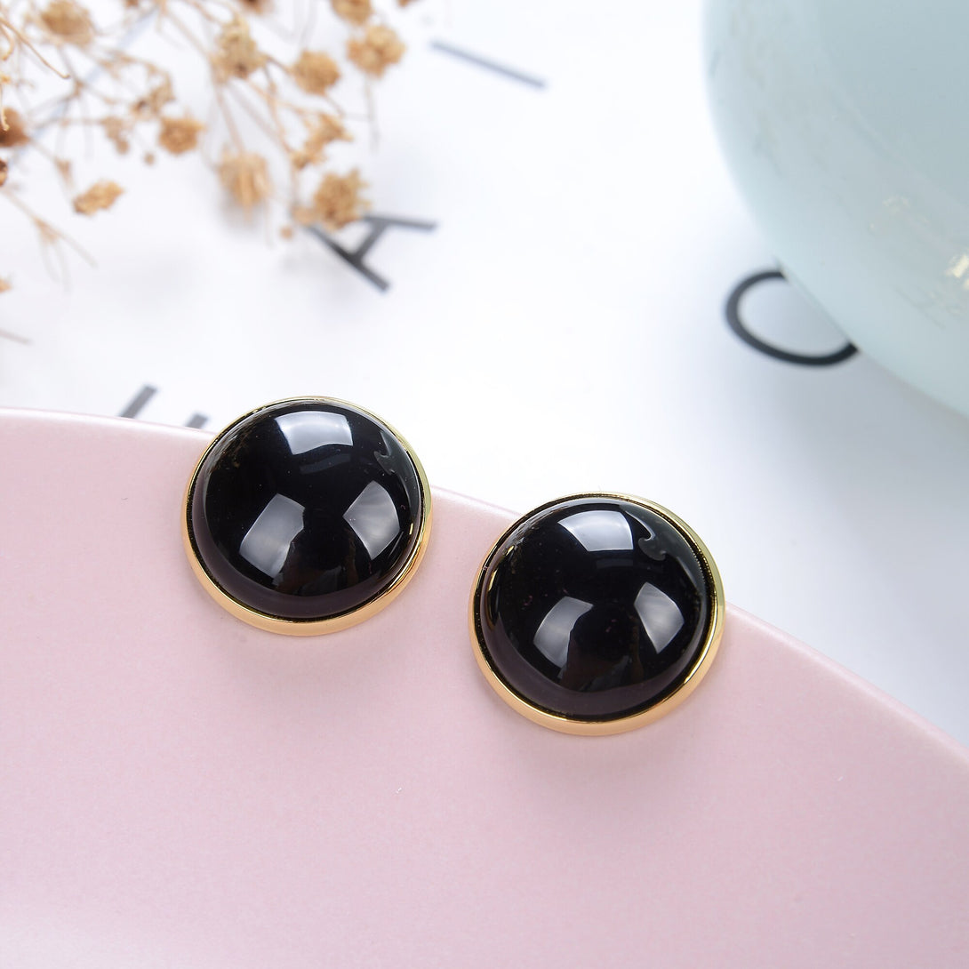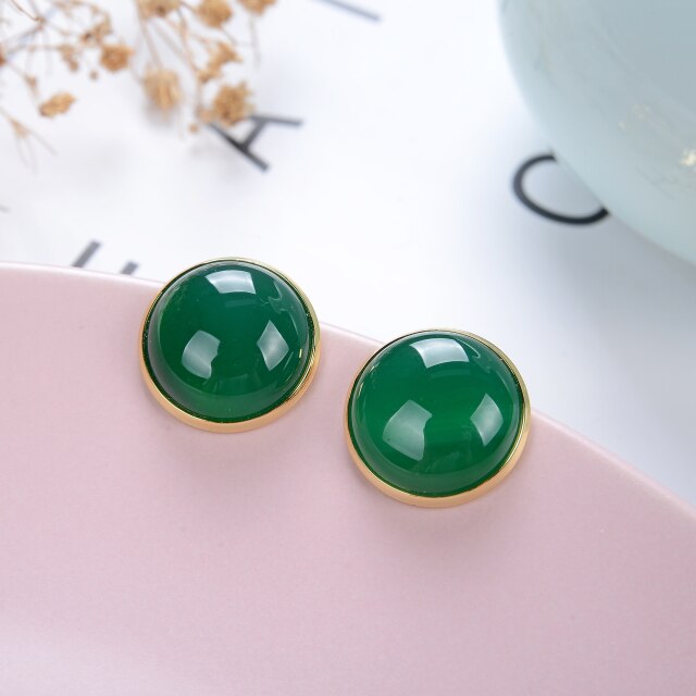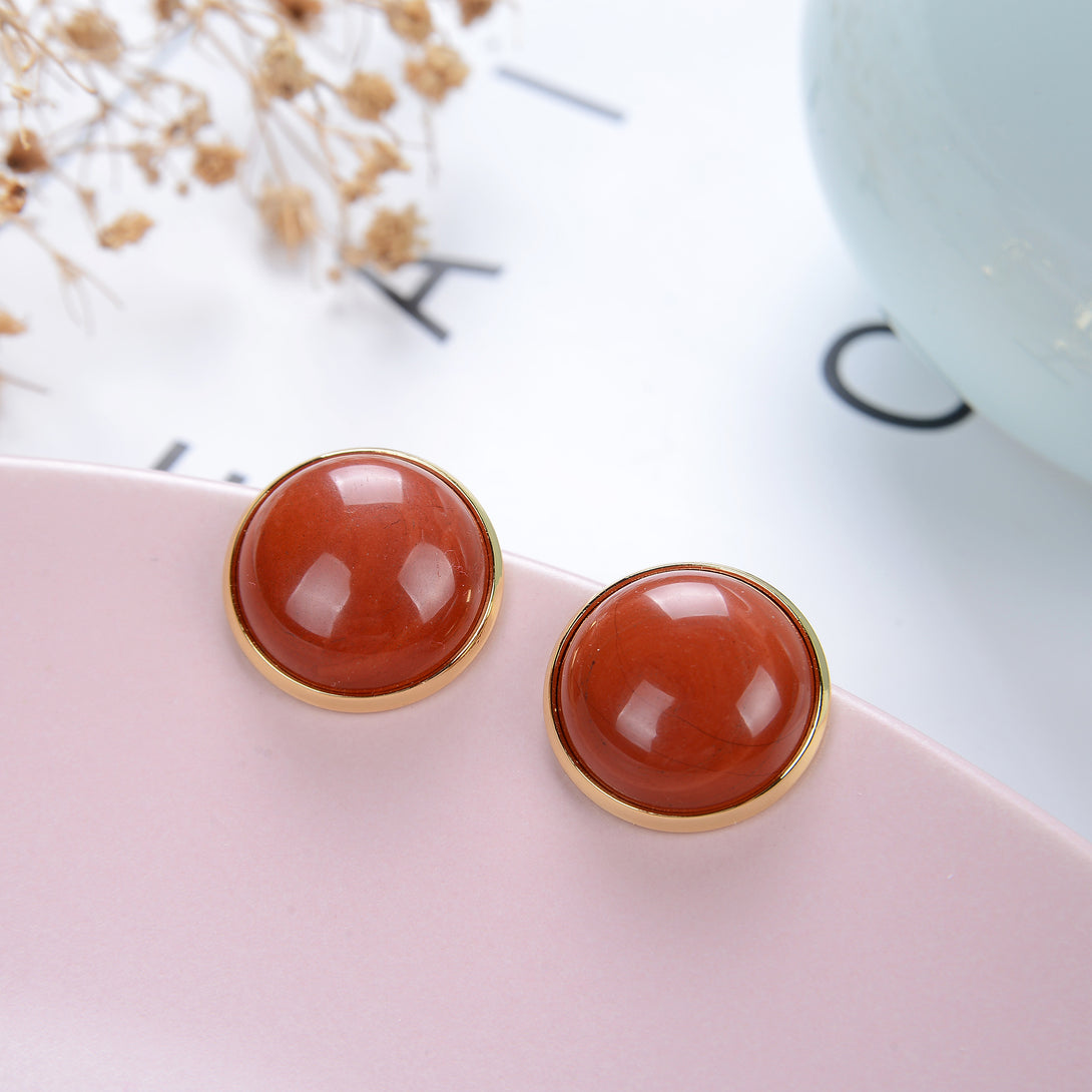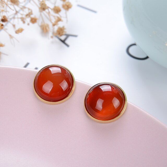 Pendientes de moda de diseño coreano, elegantes pendientes de clip redondos grandes de piedra natural con piedra de ojo de tigre, sin perforar, para mujer.