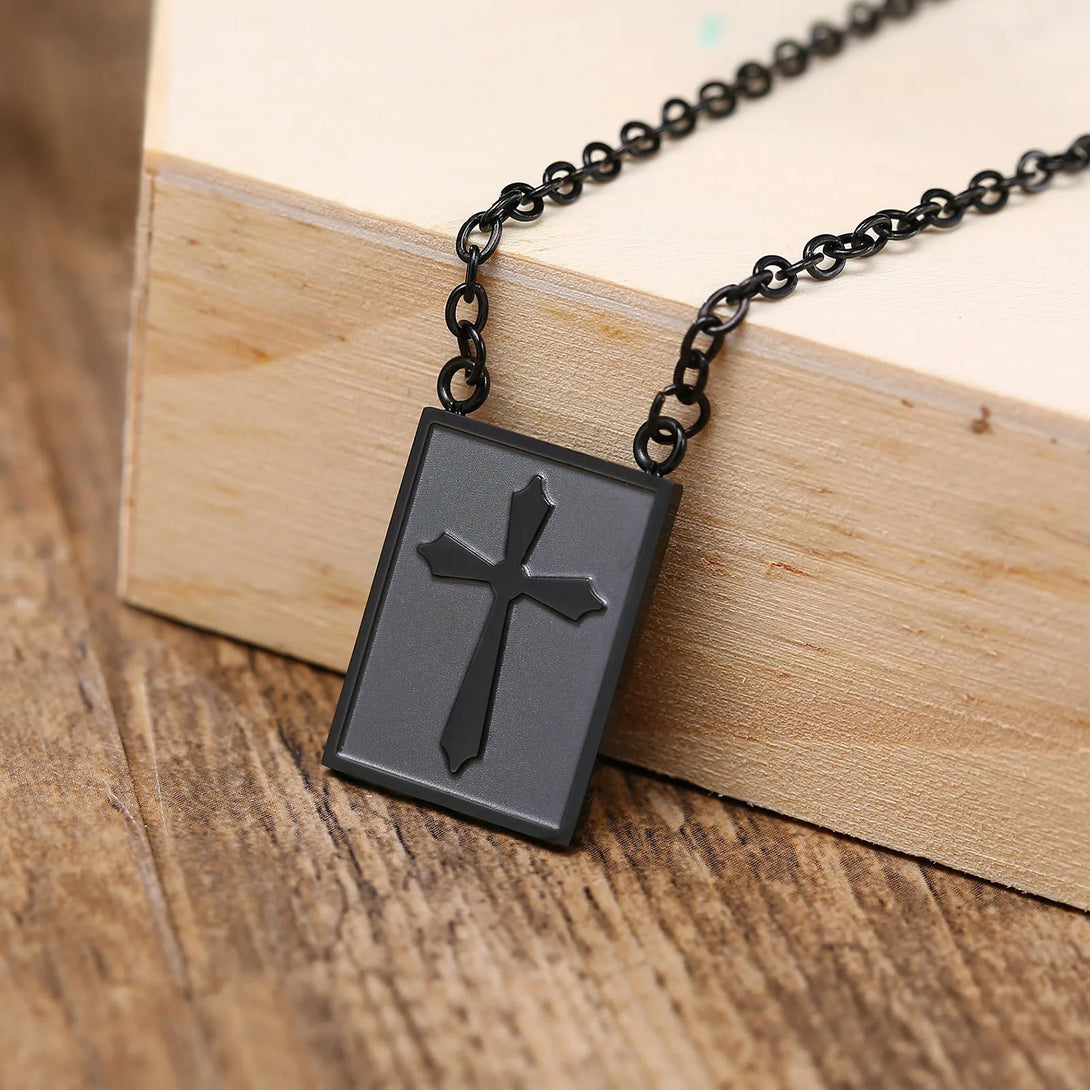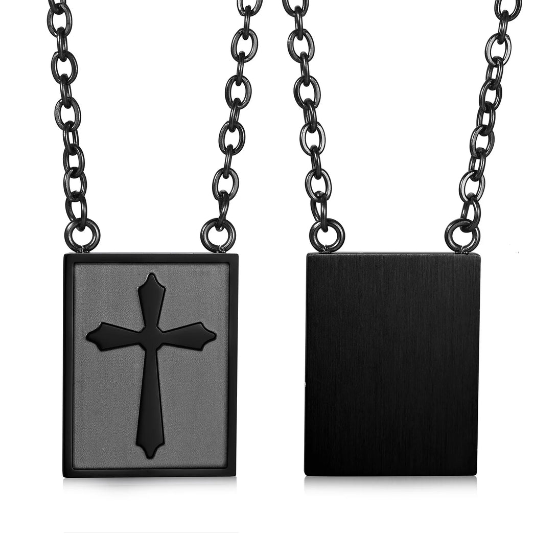 Collar para hombre, collares populares con escapulario, dije con cruz pequeña, joyería de acero inoxidable, atrevida y sofisticada.