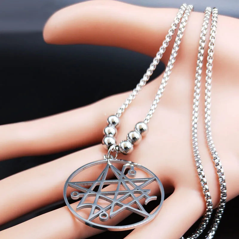 Estilo: Collar largo de acero inoxidable Necronomicon