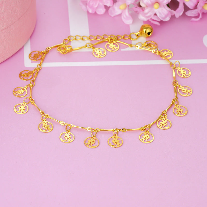 Tobilleras de lentejuelas de oro de 24 quilates que nunca se decoloran, joyería para pies de playa, pulseras de tobillo vintage para mujer, joyería de verano, regalo de fiesta.
