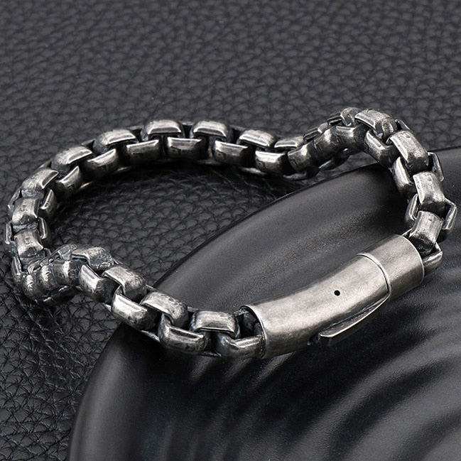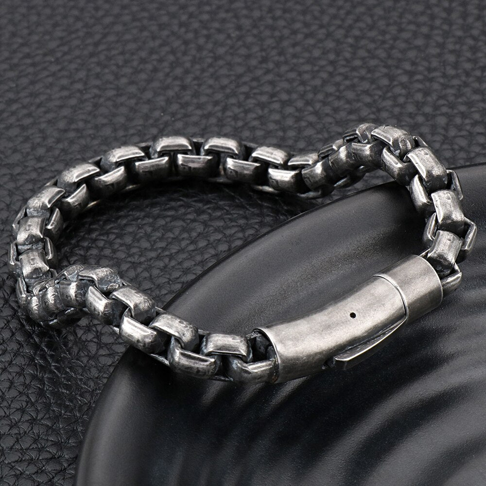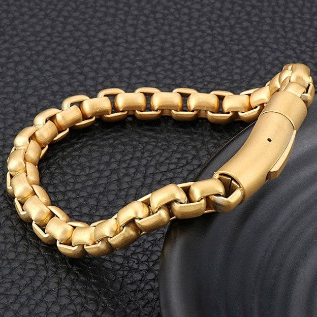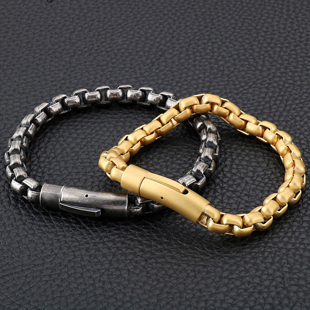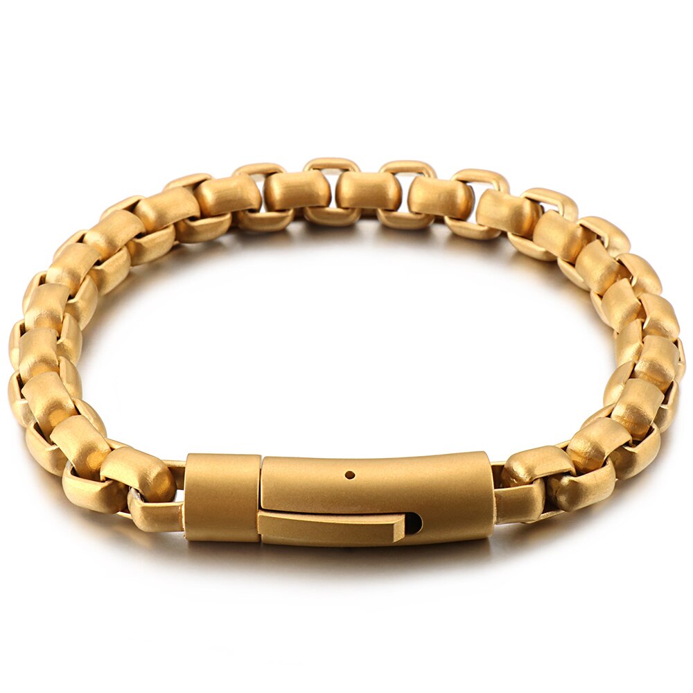 Pulsera de acero inoxidable chapada en oro que nunca se decolora para hombre, estilo vintage, de 8 mm de grosor, con eslabones de cadena, joyería de metal.