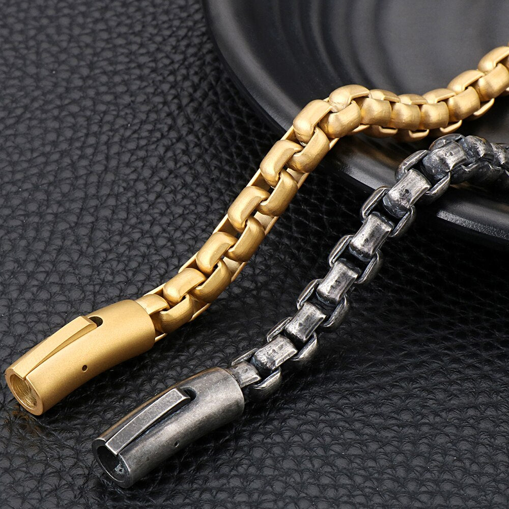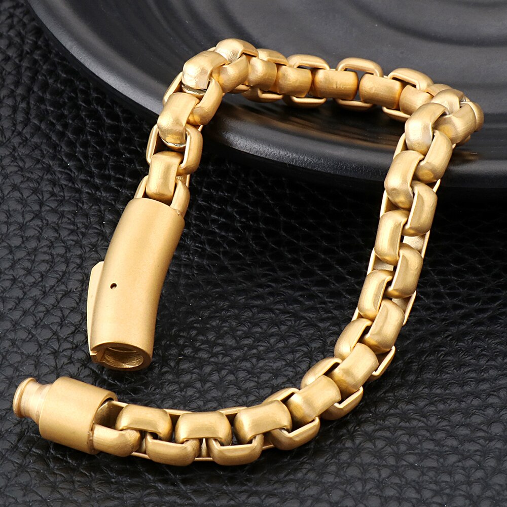 Pulsera de acero inoxidable dorado para hombre: Pulseras de eslabones de cadena para hombre
