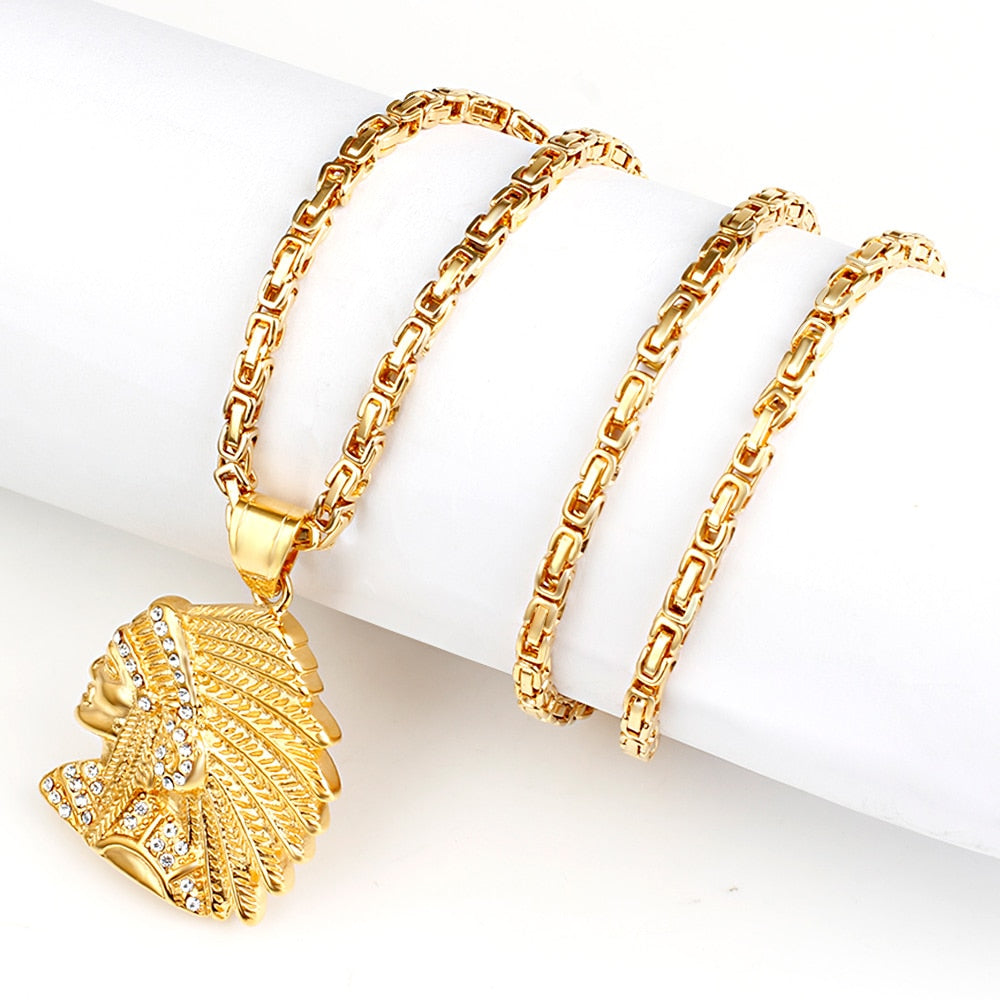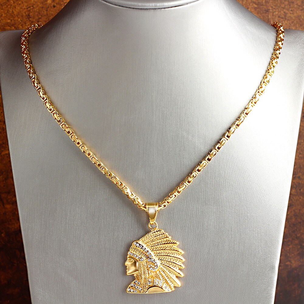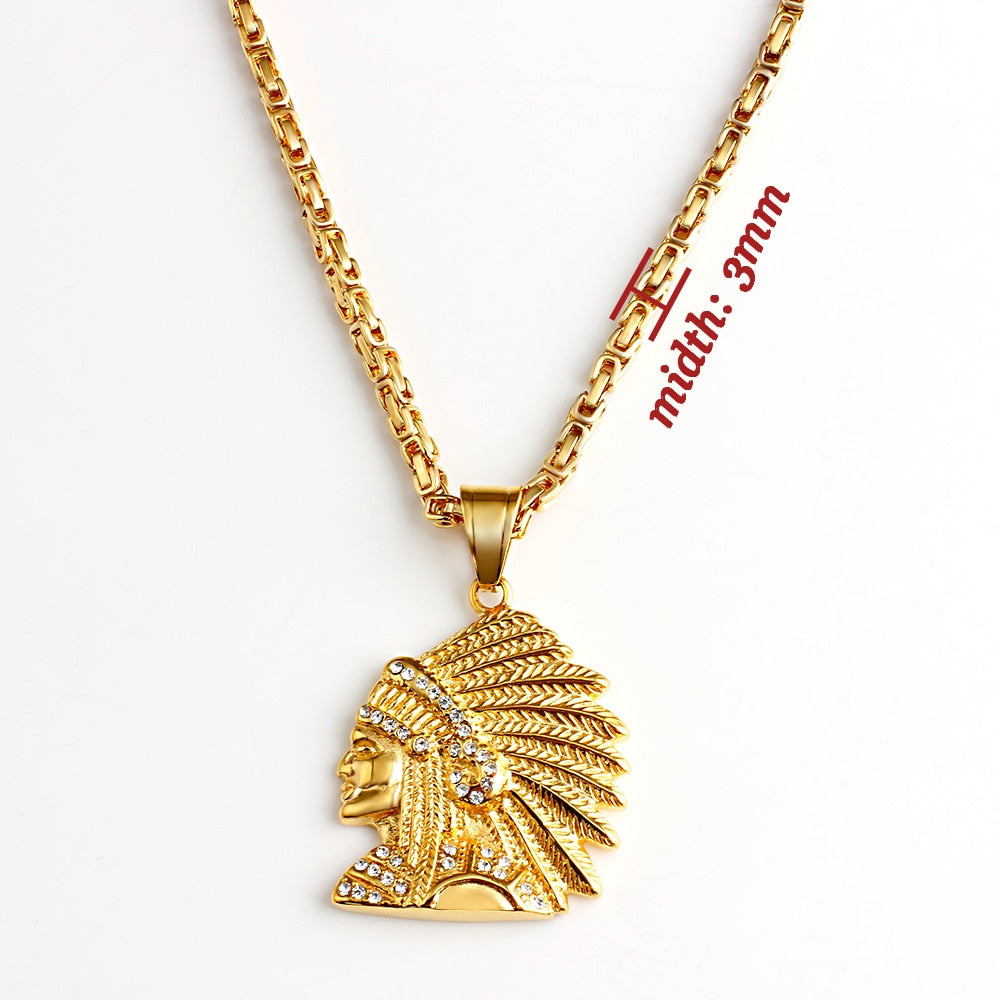 Nuevo collar con colgante de cabeza india de oro de acero inoxidable 316L para mujeres y hombres, joyería de moda, regalos.