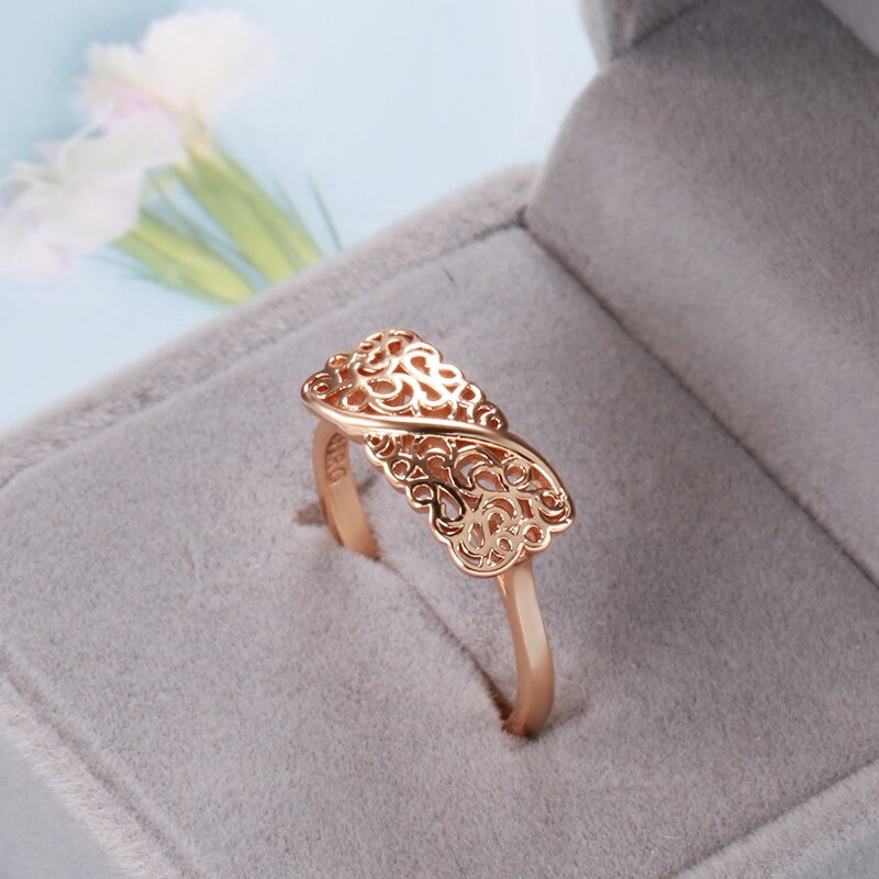 Joyería de oro 585: nuevos anillos de oro rosa 585 para mujer, diseño geométrico vintage, elegantes, curvos, sencillos, para boda, regalo de fiesta, joyería fina.