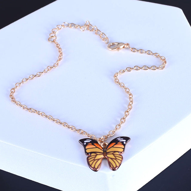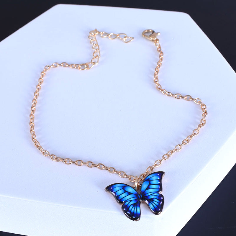 Tobilleras: Tobilleras bohemias con colgante de mariposa para mujer, tobilleras brillantes con cadena dorada, pulsera para el tobillo, joyería playera de verano para el pie.