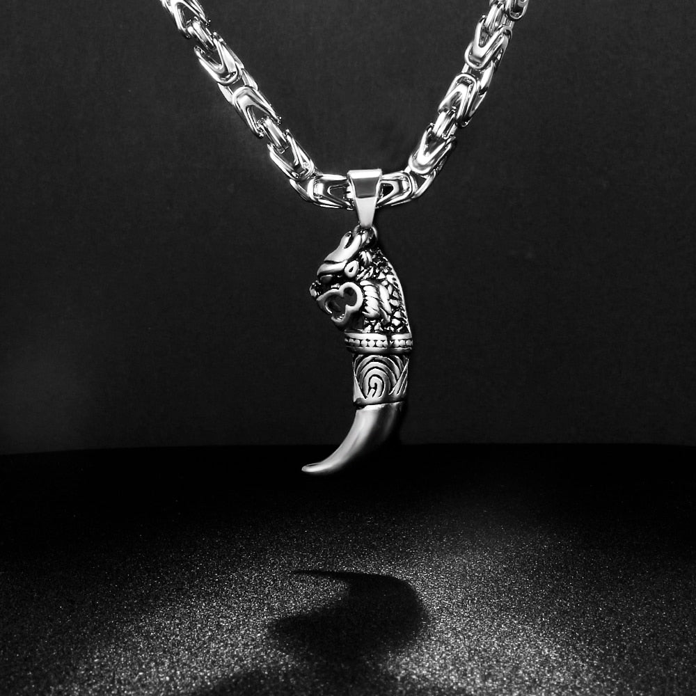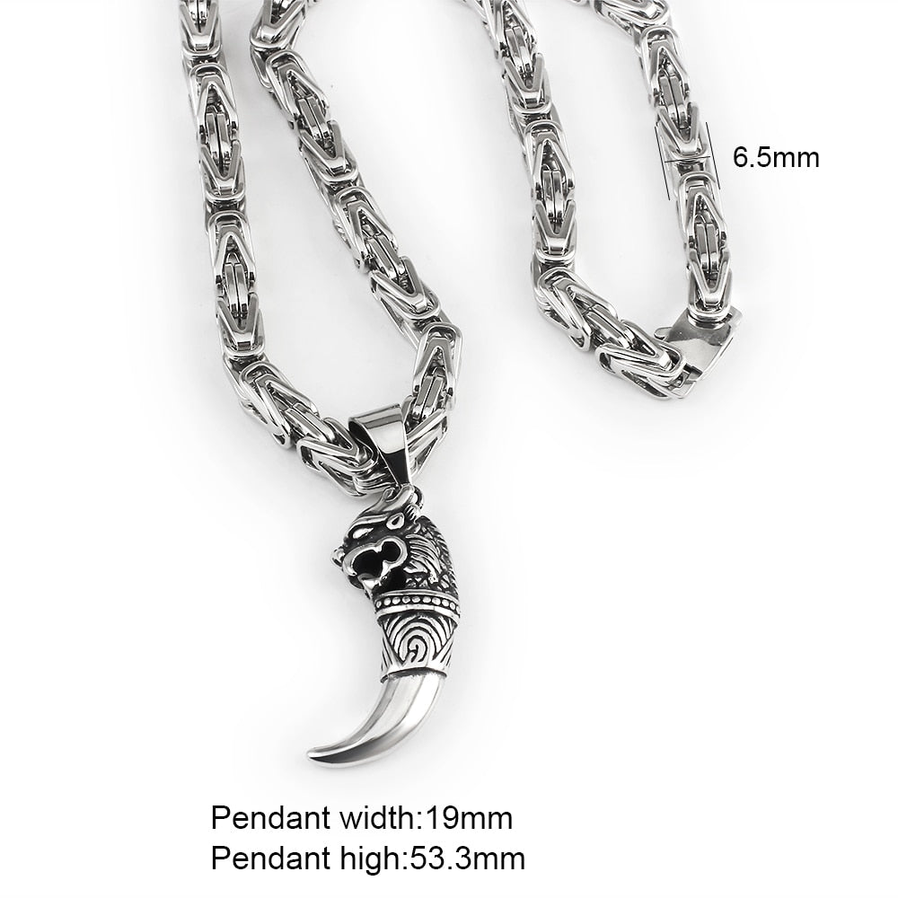 Nuevo collar de cadena bizantina para hombre, estilo punk, de acero inoxidable 316L, con colgante de lobo.