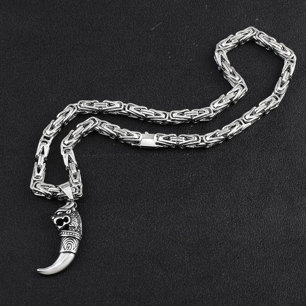 Nuevos collares de cadena bizantina para hombre, estilo punk, de acero inoxidable 316L, con colgante de lobo, cadena imperial, joyería de moda, regalos.