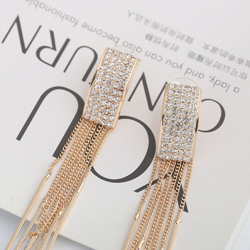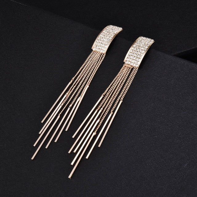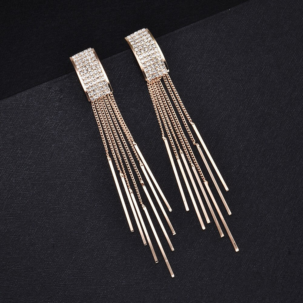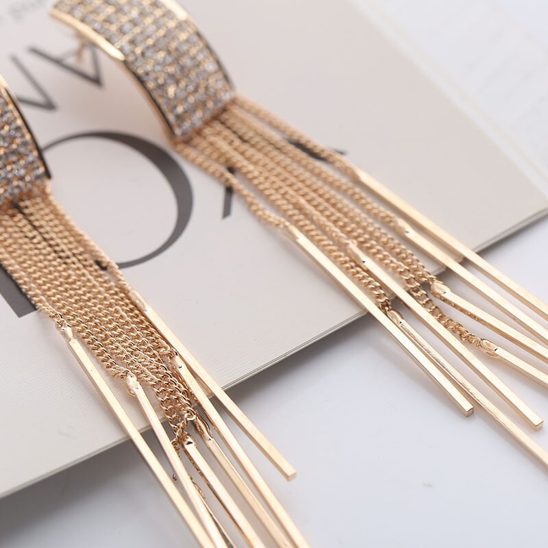 Nuevos pendientes largos con borlas de cristal en color dorado para mujer