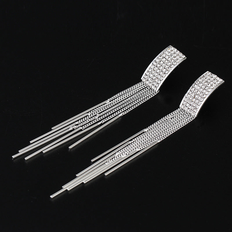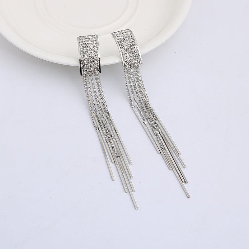 Pendientes de moda: nuevos pendientes largos de clip con borlas de cristal en color dorado para mujer, para bodas, sin perforaciones.