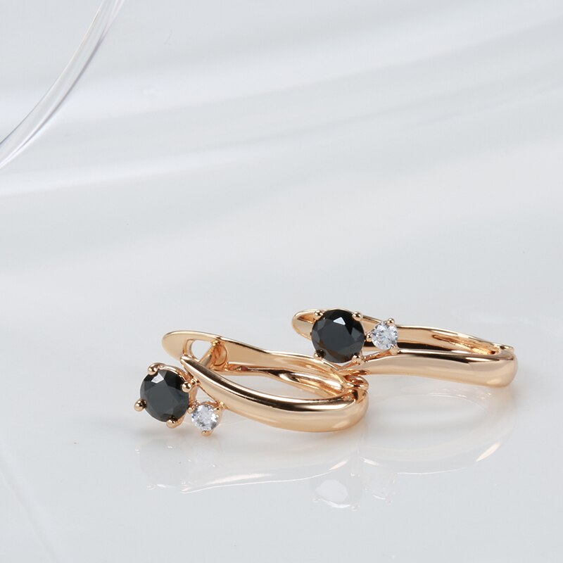 Joyería de oro 585: nuevos pendientes minimalistas de clip de circonita, oro rosa 585, incrustaciones de circonita negra y diamantes, delicados pendientes dorados perforados, joyería de fiesta, regalo