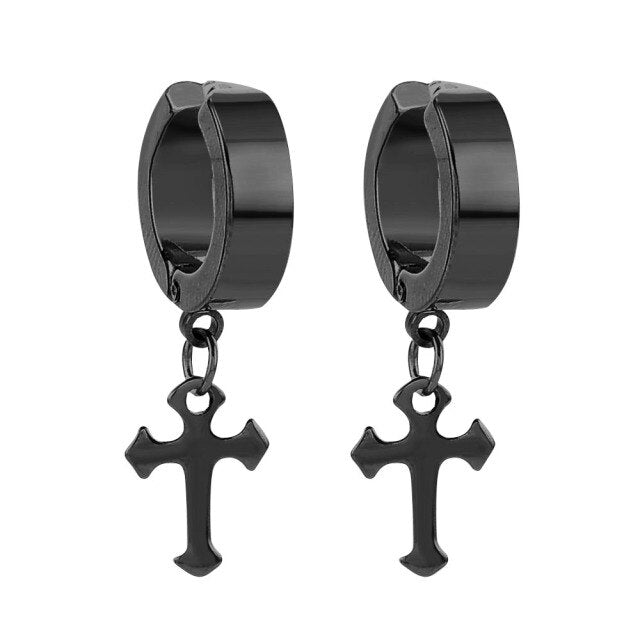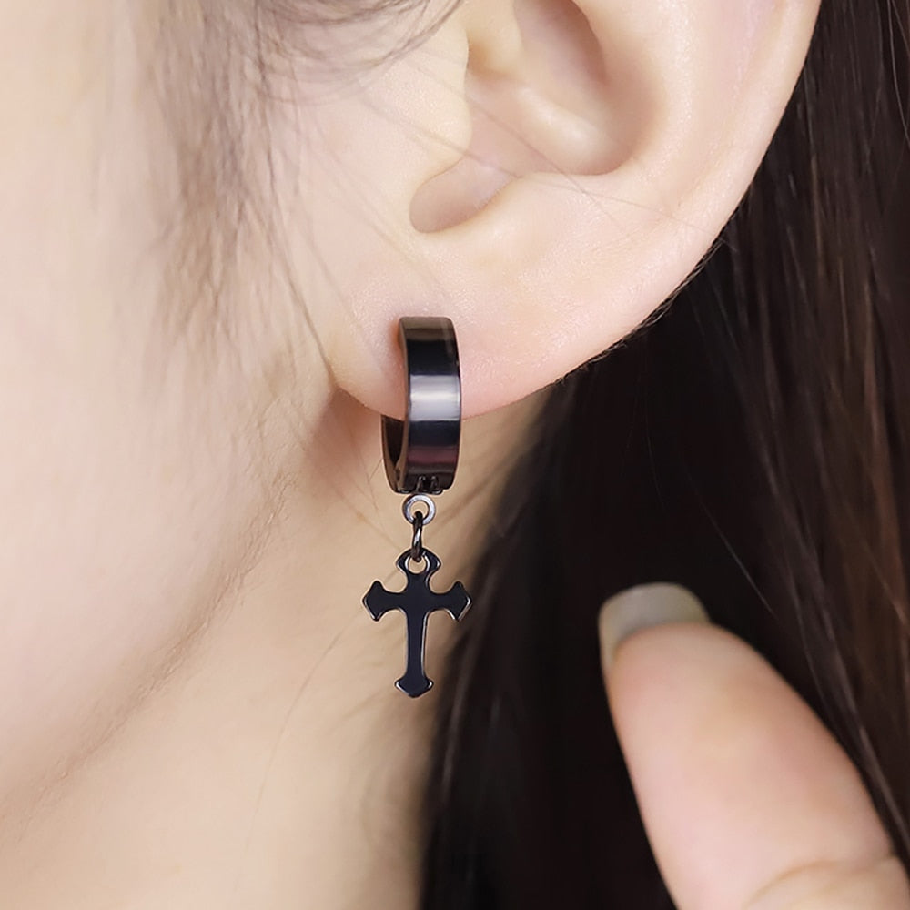Pendientes de moda: nuevos y populares pendientes de clip de oreja sin dolor de acero inoxidable con forma de cruz para hombres y mujeres, pendientes falsos negros punk sin perforaciones, regalos de joyería.