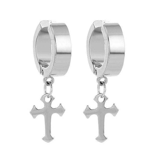 Nuevos y populares pendientes de clip de oreja de acero inoxidable con forma de cruz, sin dolor