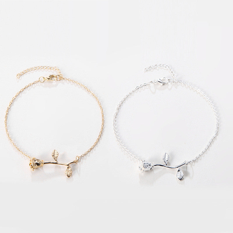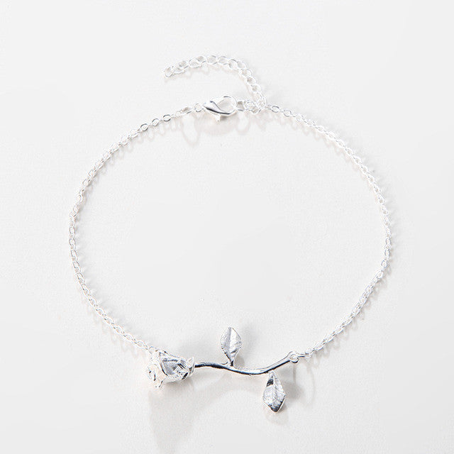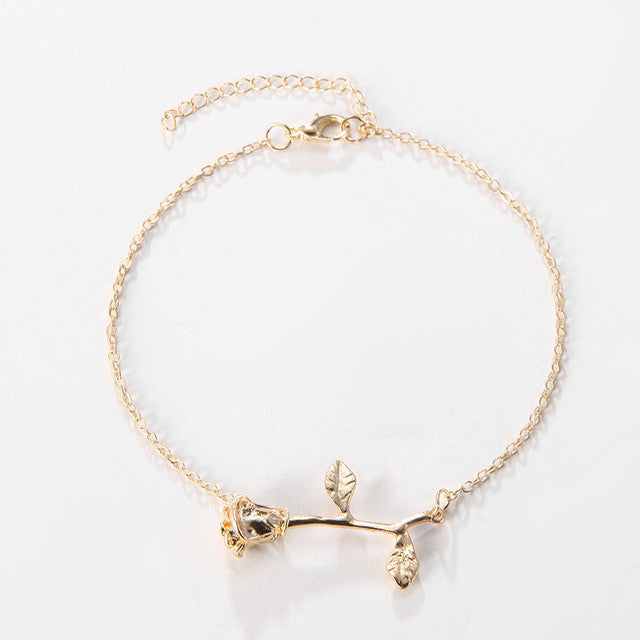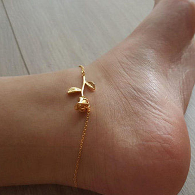 Tobilleras - 2022 Nuevas Tobilleras Sencillas con Cadena de Flores Rosas en Color Dorado, Calzado Vintage Bohemio, Pulsera de Tobillo para Playa y Océano de Verano, Joyería para el Pie