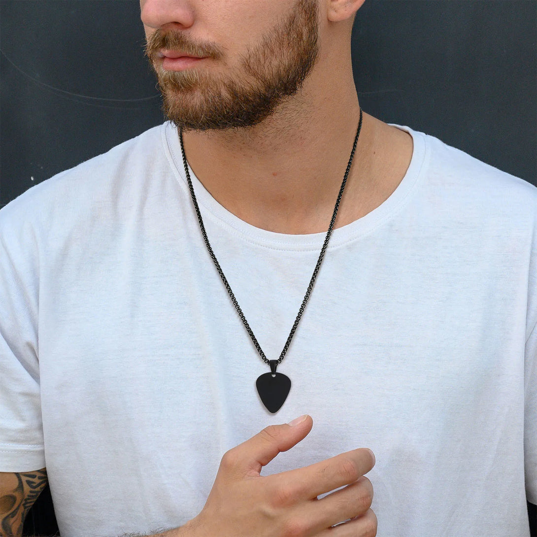 Nuevo y moderno collar con púas de guitarra para hombres y niños, colgante de acero inoxidable resistente al agua, joyería para amantes de la música.