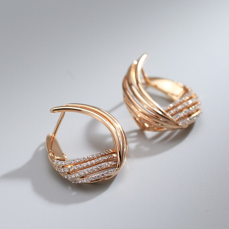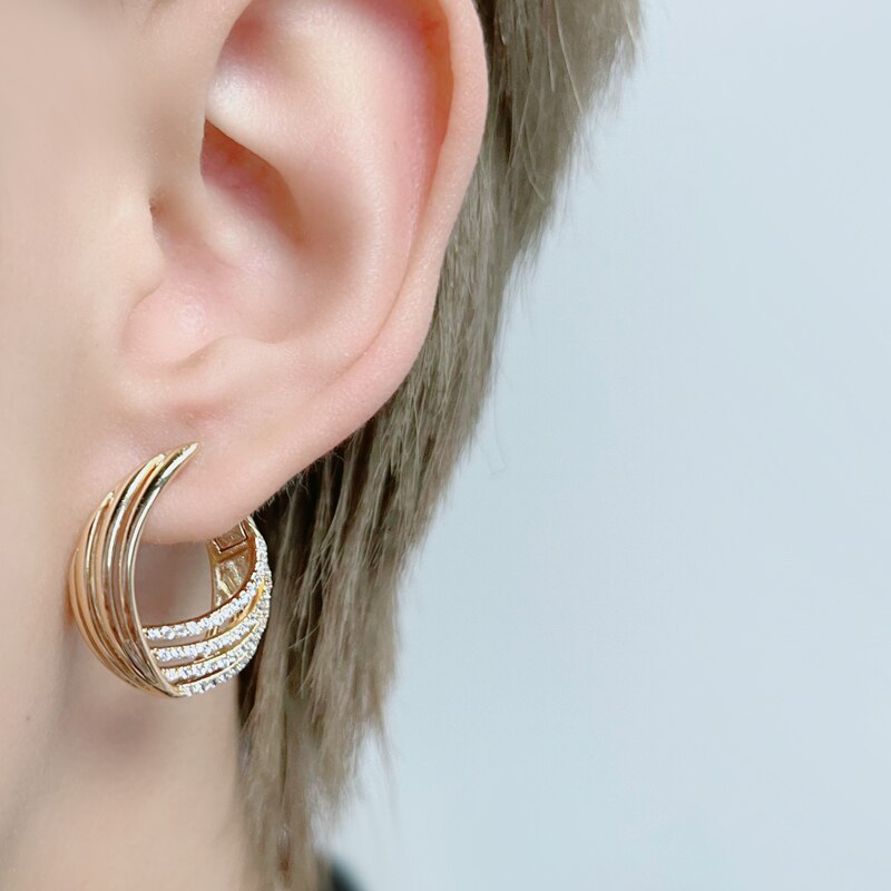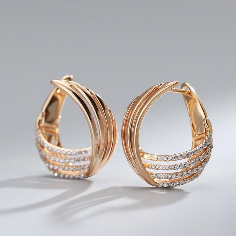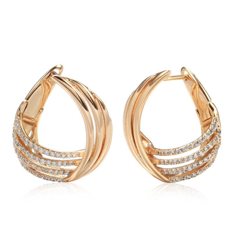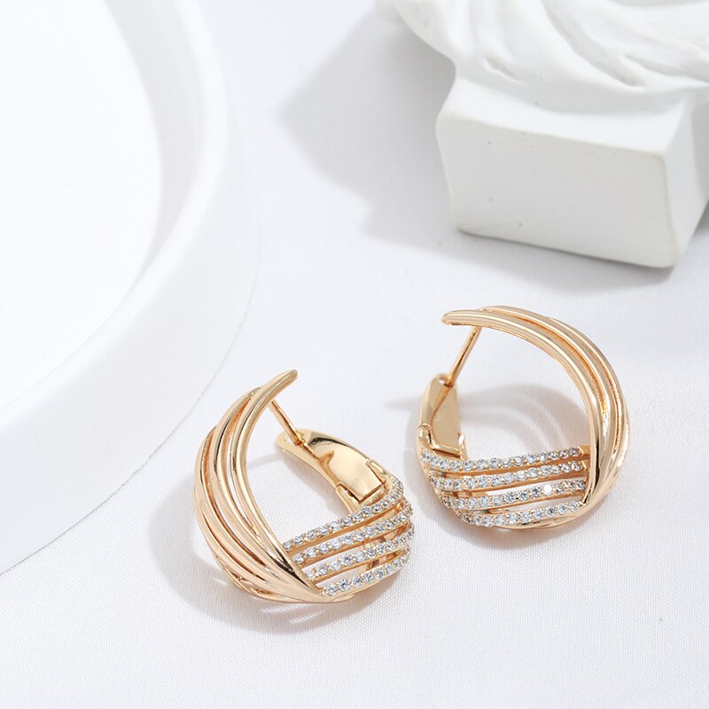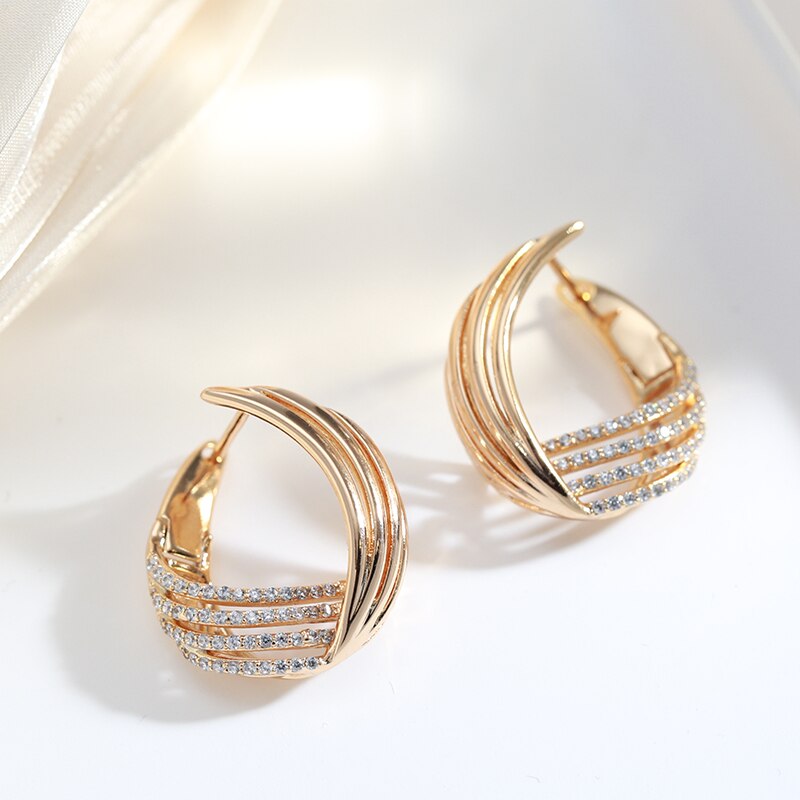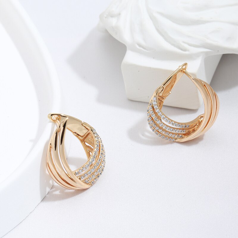 Nuevos y modernos pendientes de aro grandes con circonitas multicapa en oro 585 para mujer